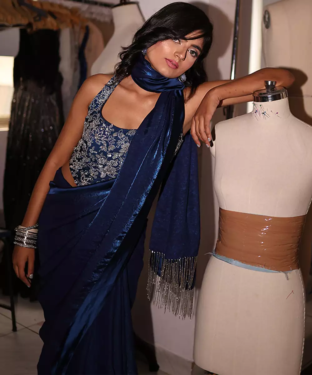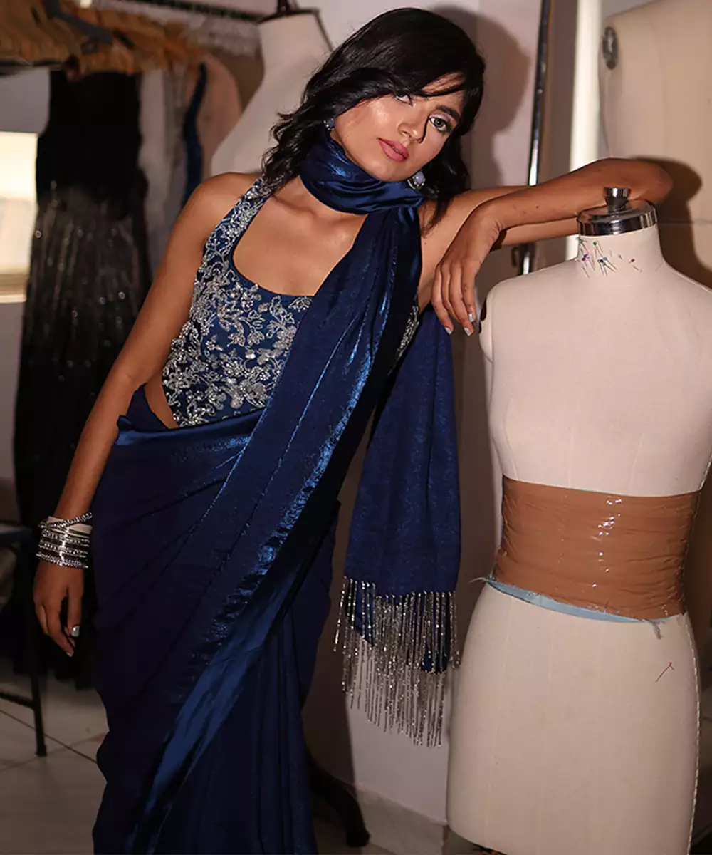 This Blue Embroidered Satin Saree Exudes Refined Elegance And Timeless Charm. Crafted From Lustrous Satin Fabric, It Features Intricate Embroidery That Adds A Rich, Graceful Touch. Perfect For Weddings And Festive Occasions, It Drapes Beautifully And Enhances Traditional Looks With Sophisticated Appeal.