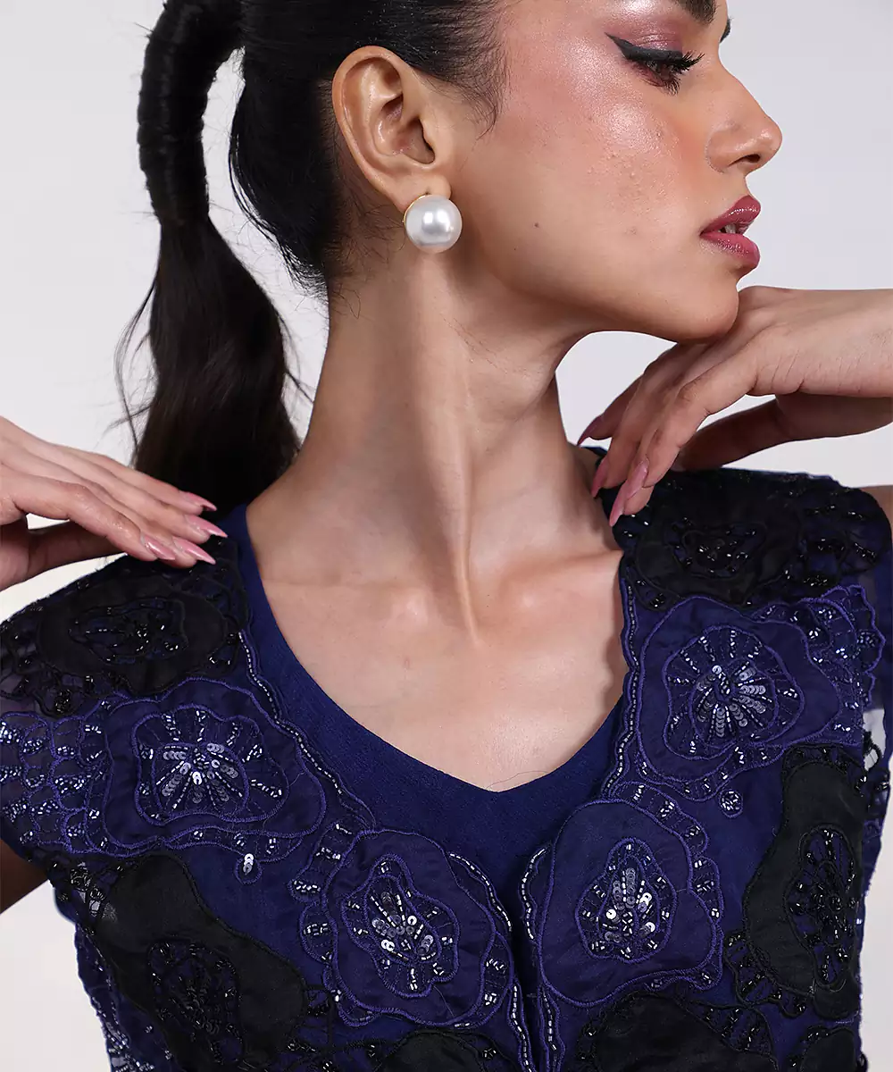 Elevate Your Style With This Blue Embroidered Chinon Co Ord Set, Crafted From Lightweight Chinon For A Graceful Drape. Detailed With Delicate Embroidery, It Blends Modern Elegance With Comfort, Making It Perfect For Festive Occasions, Evening Gatherings, And Refined Day To Night Looks.