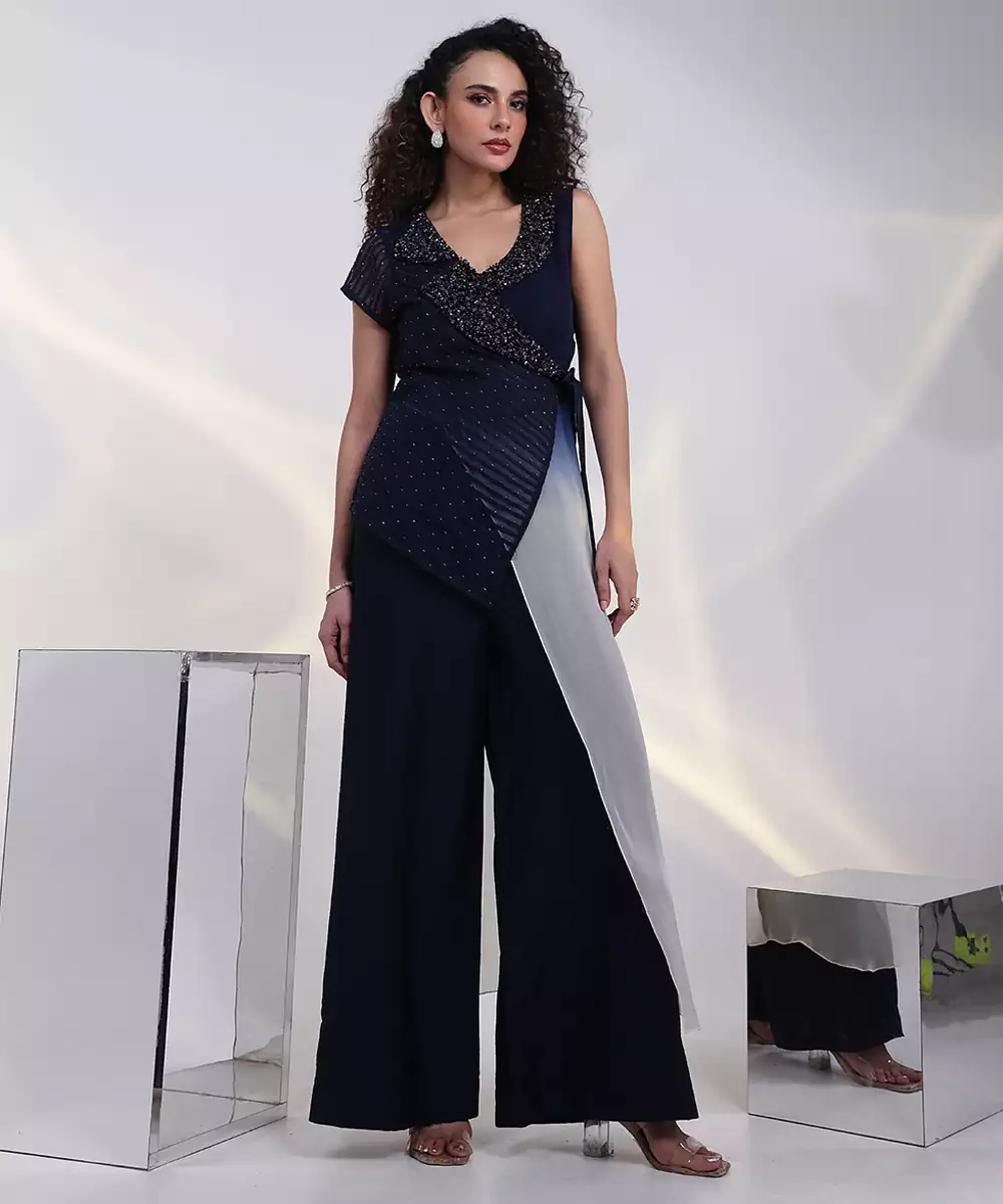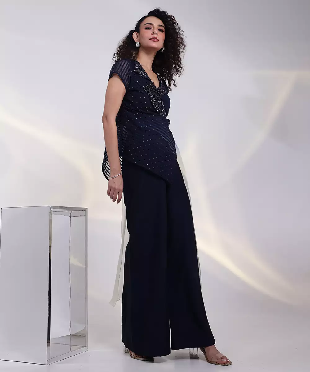 Elevate Your Style With This Blue Embroidered Georgette Co Ord Set, Designed In Lightweight Georgette For A Fluid, Elegant Fall. Intricate Embroidery Adds Refined Detailing, While The Coordinated Silhouette Ensures Effortless Charm, Making It Ideal For Festive Occasions, Evening Gatherings, And Special Celebrations.