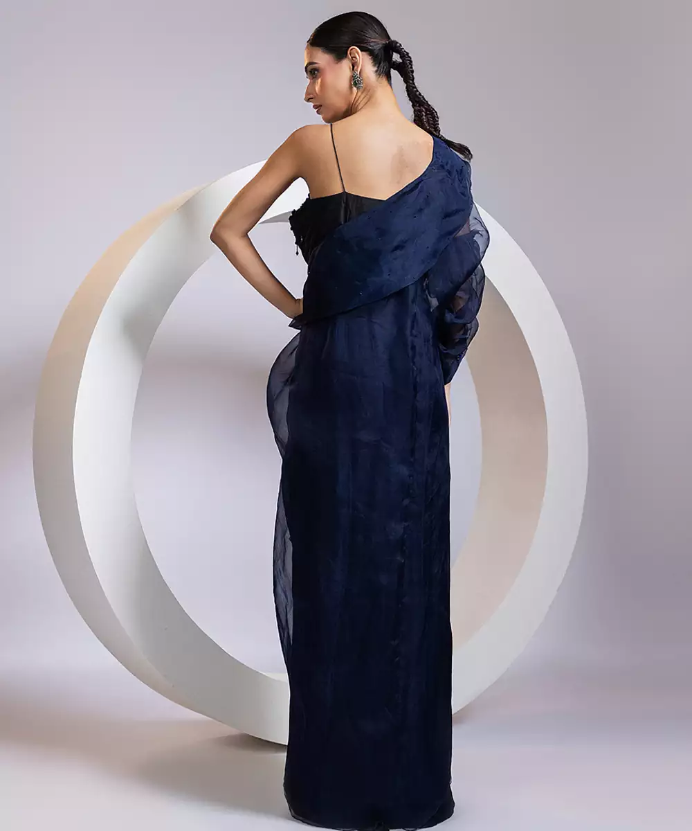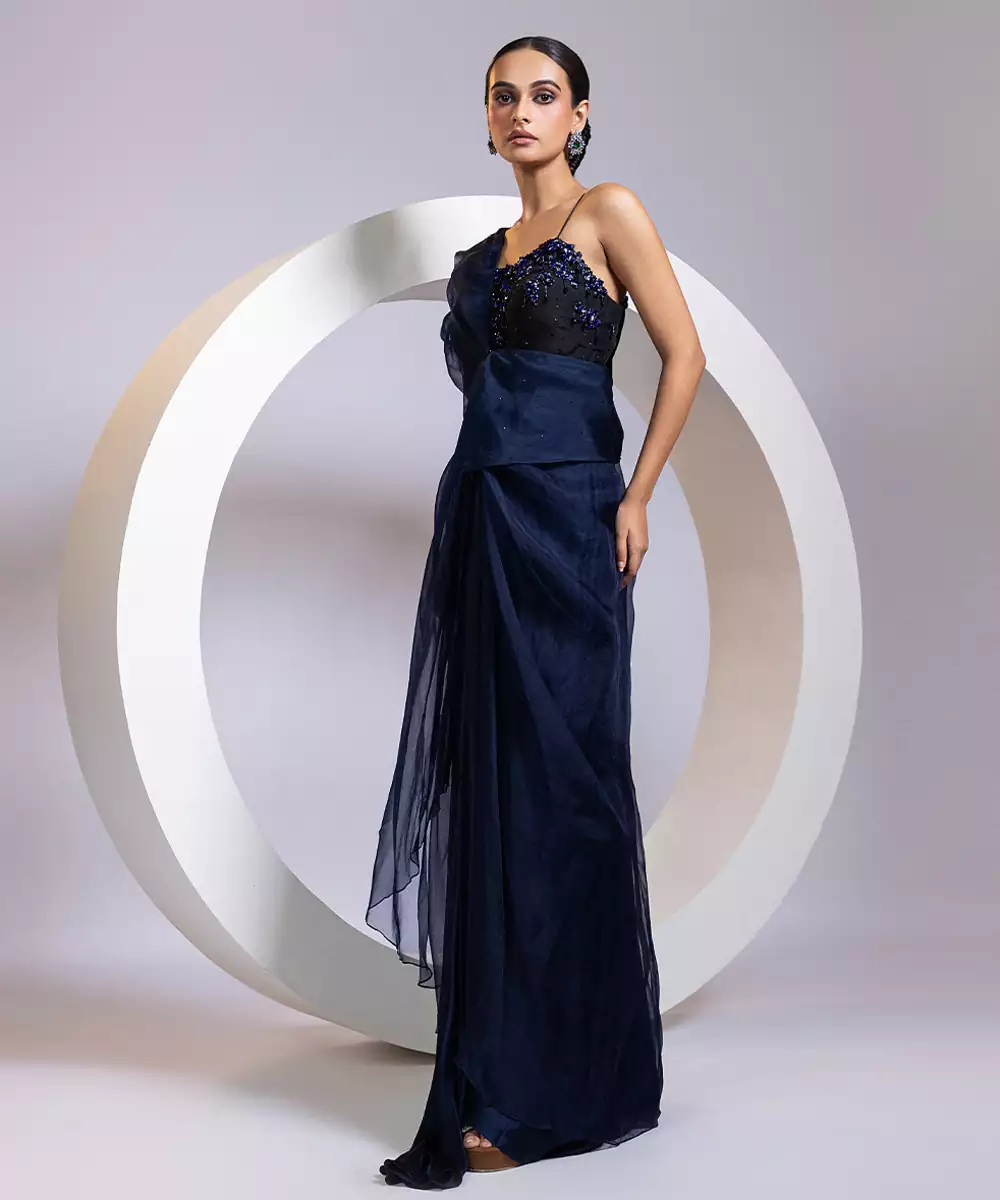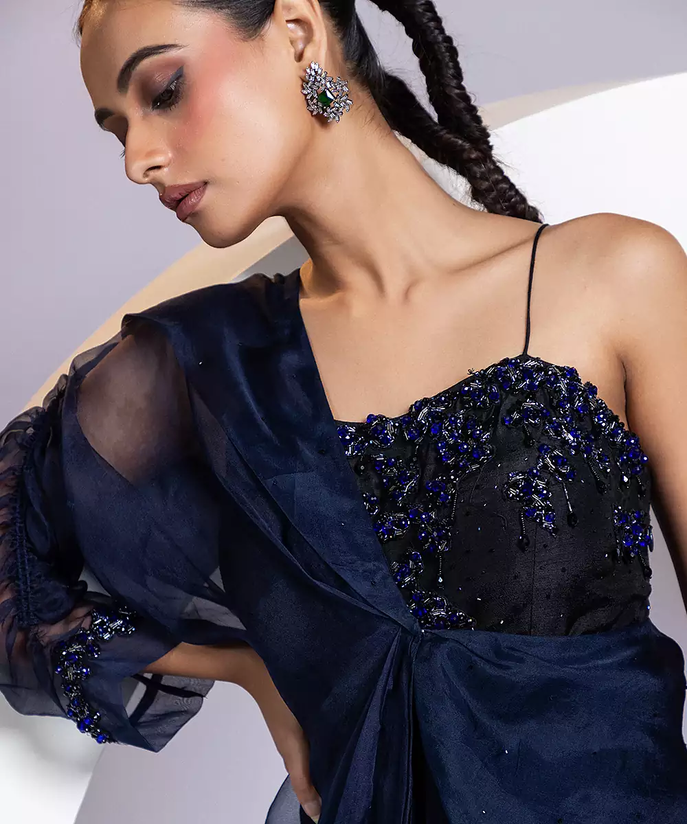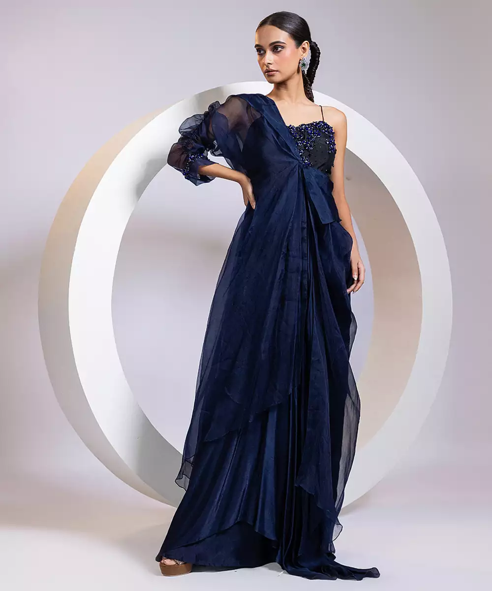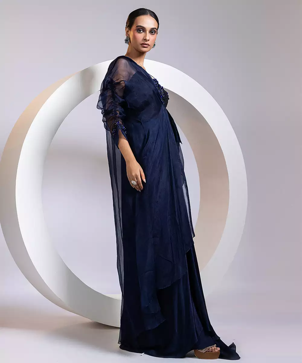 This Blue Embroidered Silk Dress Exudes Timeless Elegance With Its Rich Hue And Luxurious Sheen. The Smooth Silk Fabric Drapes Beautifully, While Intricate Embroidery Adds Refined Artistry And Festive Charm. Perfect For Celebrations, Evening Events, And Special Occasions, It Blends Comfort With Sophisticated Style For A Stunning, Graceful Look.