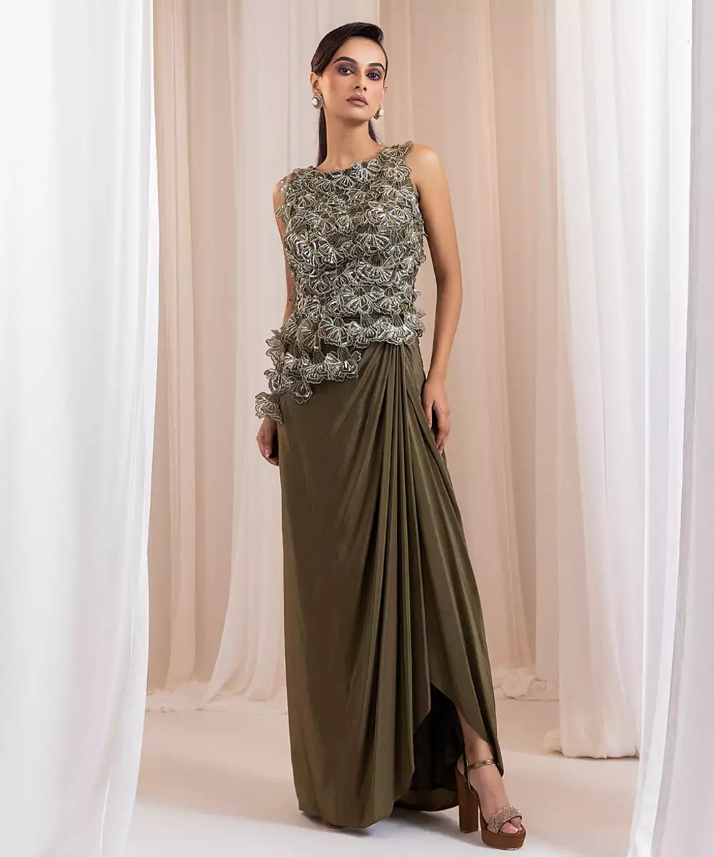 This Green Embroidered Crepe Co Ord Set Exudes Modern Elegance With Its Smooth, Lightweight Fabric And Flattering Drape. Intricate Embroidery Adds A Refined Festive Touch, Enhancing Its Rich, Vibrant Hue. Perfect For Celebrations, Parties, And Special Occasions, It Blends Comfort With Contemporary Sophistication For A Striking, Stylish Ensemble.