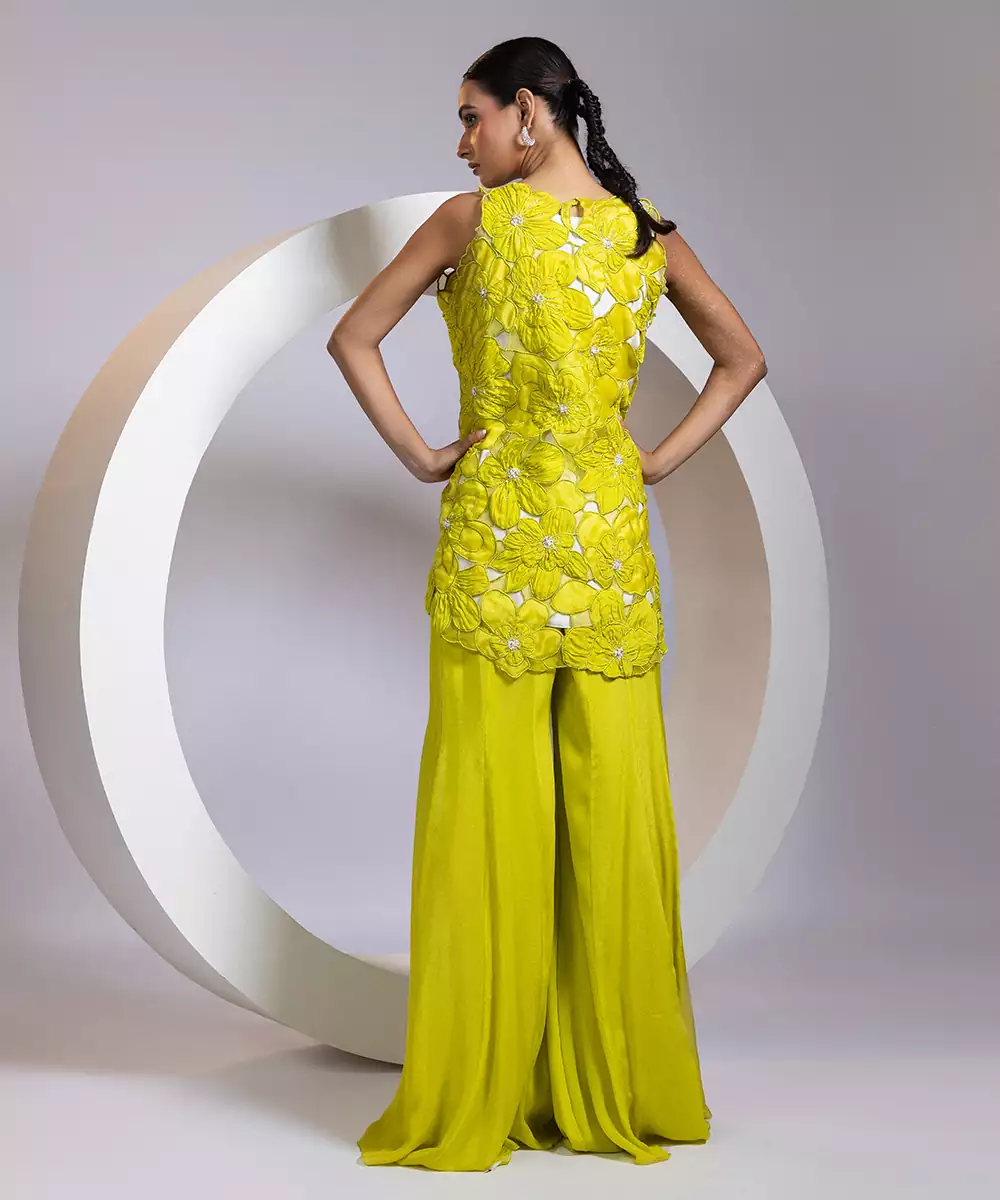 This Green Embroidered Crepe Co Ord Set Radiates Modern Elegance With Its Smooth, Lightweight Fabric And Flattering Drape. Intricate Embroidery Adds A Festive, Refined Touch, Enhancing Its Vibrant Hue. Perfect For Celebrations, Parties, And Special Occasions, It Blends Comfort With Contemporary Sophistication For A Stylish, Standout Ensemble.