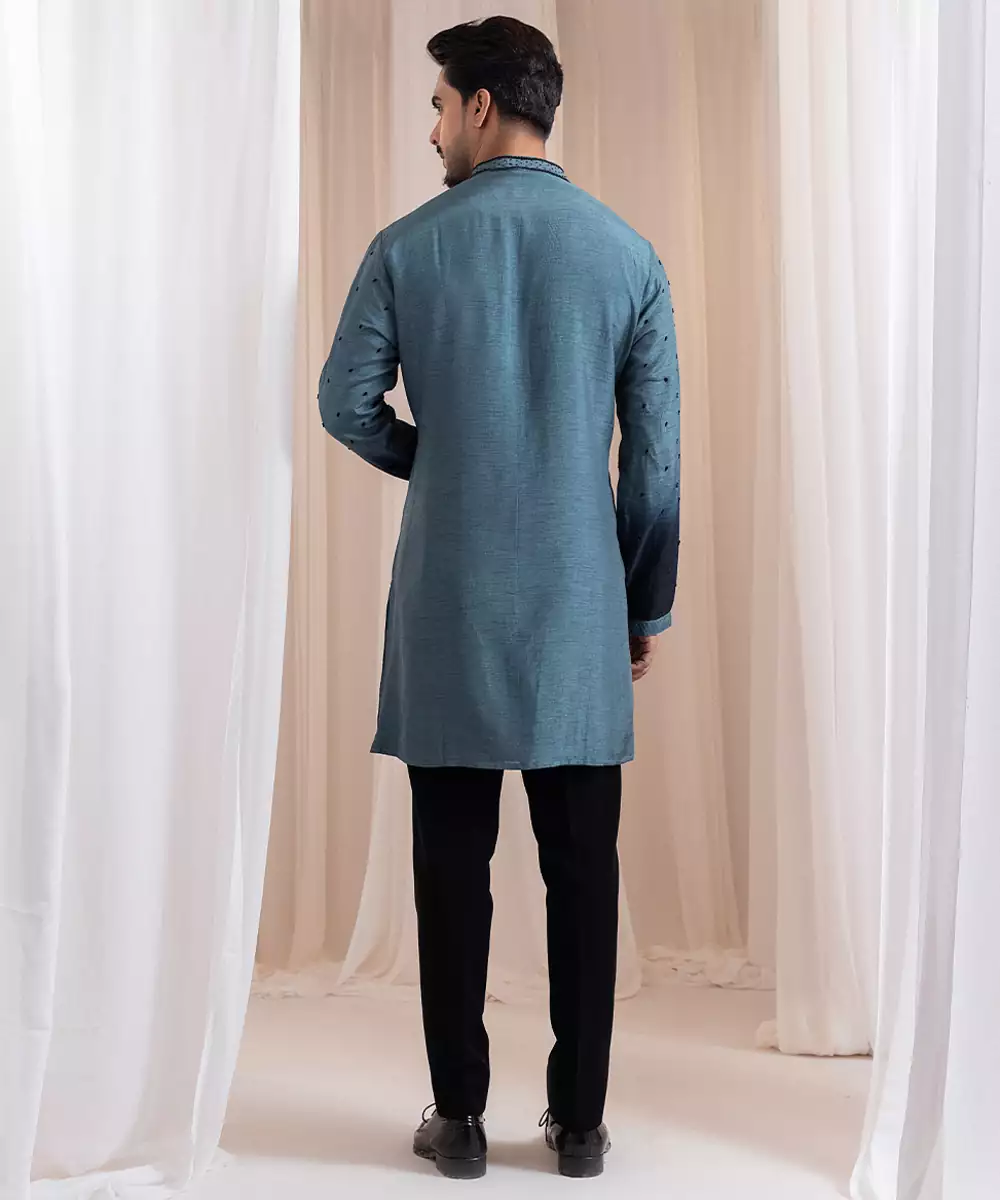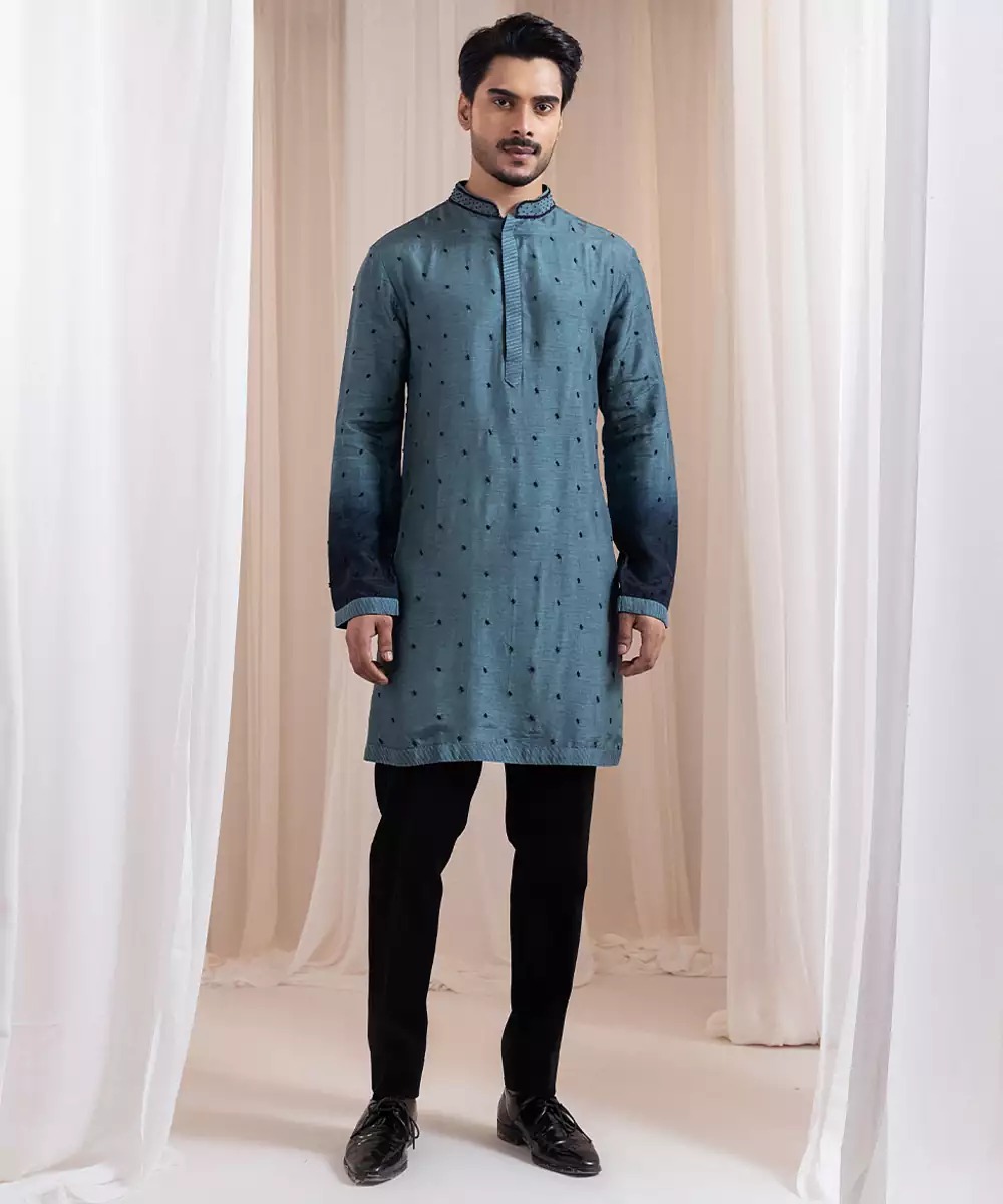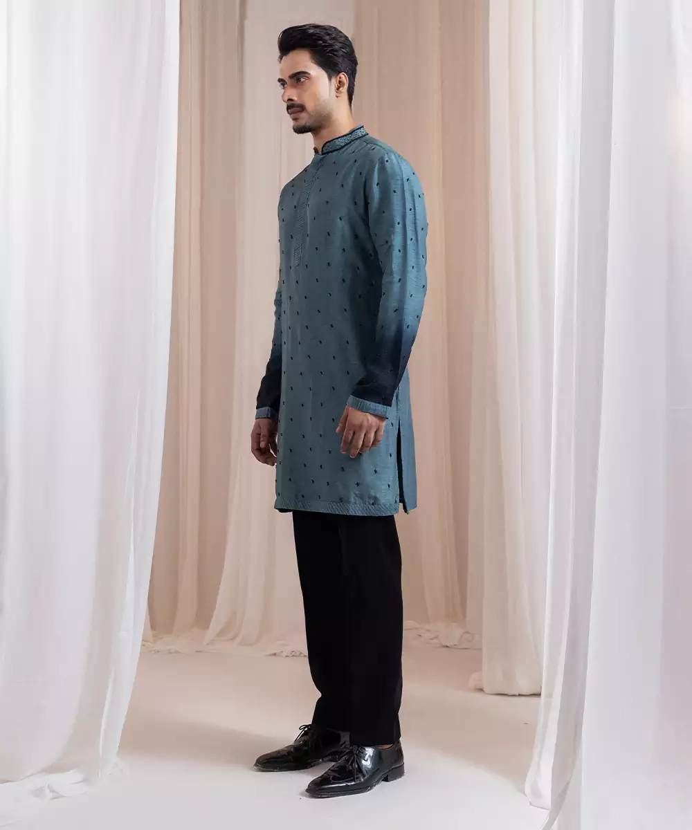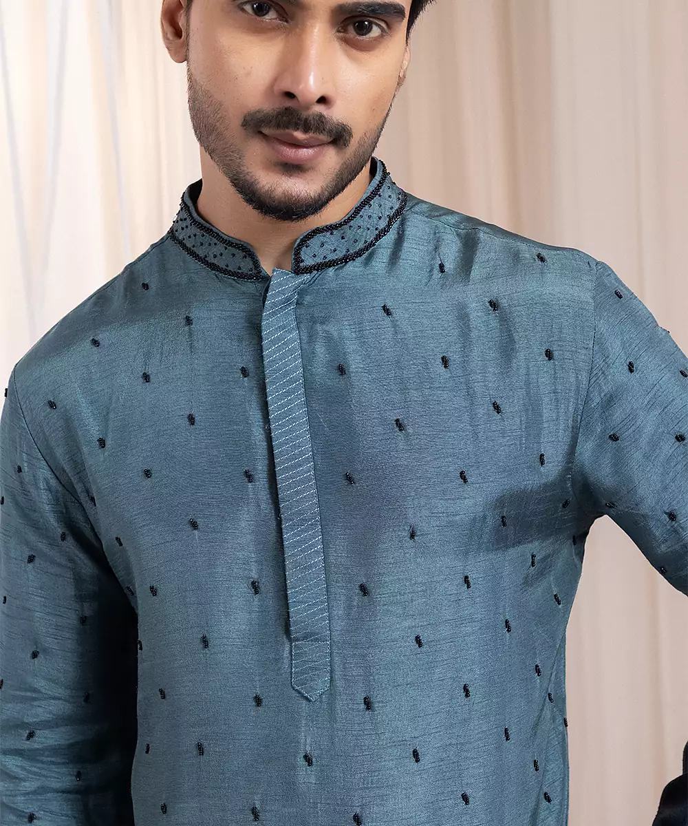 This Green Embroidered Silk Kurta Pajama Exudes Festive Elegance And Timeless Charm. Crafted From Luxurious Silk, It Features Intricate Embroidery That Enhances Its Sophisticated Appeal. The Tailored Kurta Paired With A Classic Pajama Offers A Graceful Silhouette, Making It Perfect For Weddings, Celebrations, Or Special Cultural Occasions With Refined Style.