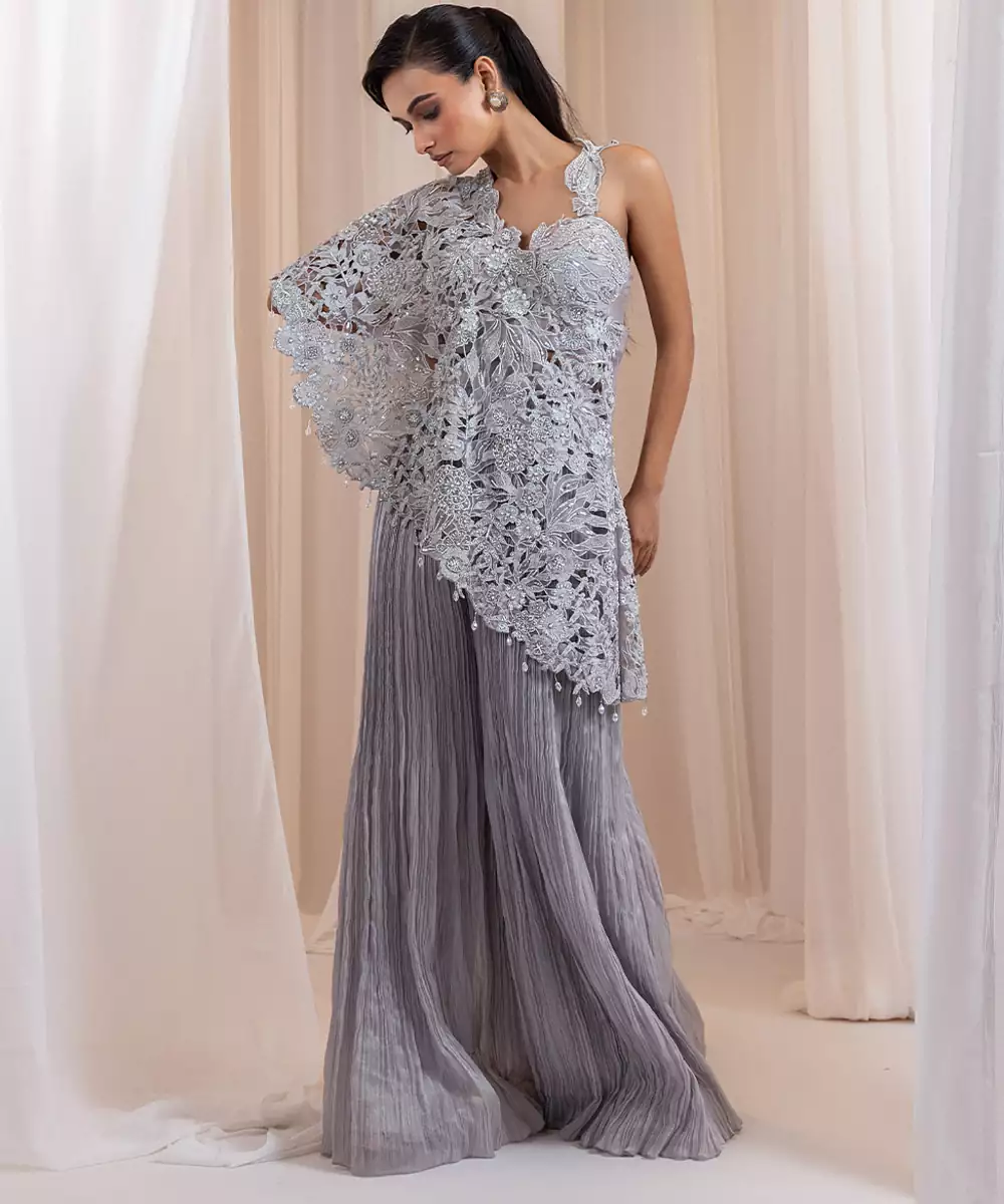 This Grey Embroidered Silk Co Ord Set Radiates Refined Elegance With Its Luxurious Sheen And Smooth, Graceful Drape. Intricate Embroidery Adds A Touch Of Festive Artistry, Enhancing Its Sophisticated Appeal. Perfect For Celebrations, Evening Events, And Special Occasions, It Blends Comfort With Timeless Style For A Polished, Contemporary Look.