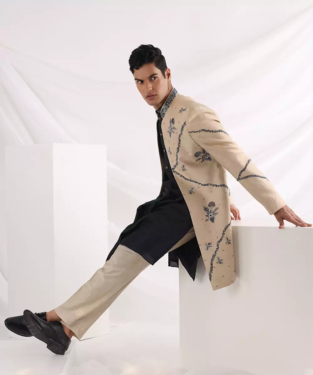 Dramatic And Dazzling, Describe This Sherwani Perfectly. Its Exceptional Design And Craftsmanship Is One Of A Kind.