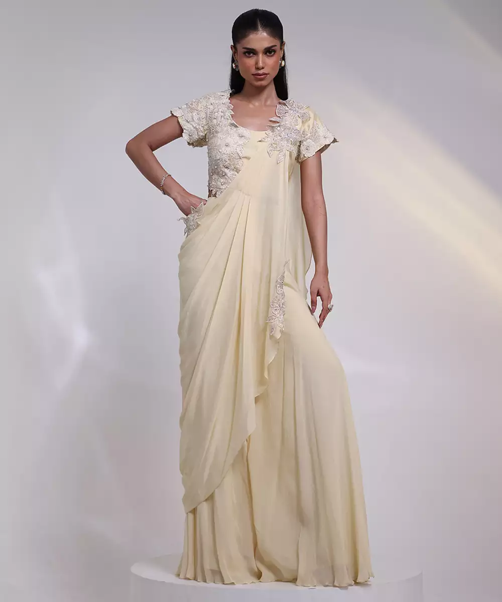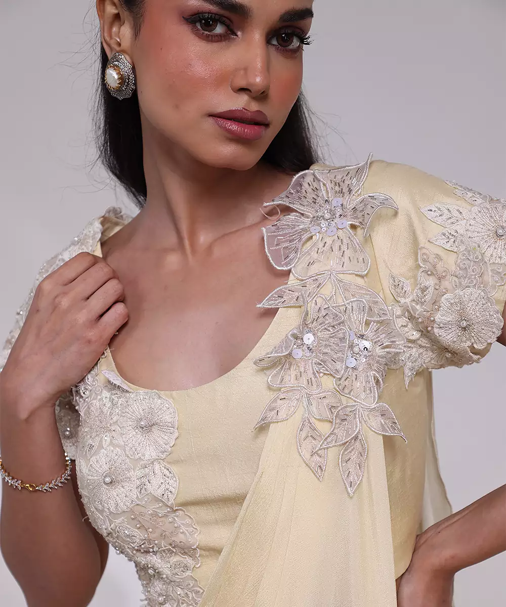 Elevate Your Style With This Ivory Embroidered Silk Co Ord Set. Crafted In Luxurious Silk, It Features Delicate Embroidery That Adds Timeless Elegance. The Coordinated Silhouette Offers Effortless Sophistication, Making It Ideal For Festive Celebrations, Intimate Gatherings, And Refined Evening Occasions With A Graceful, Modern Appeal.