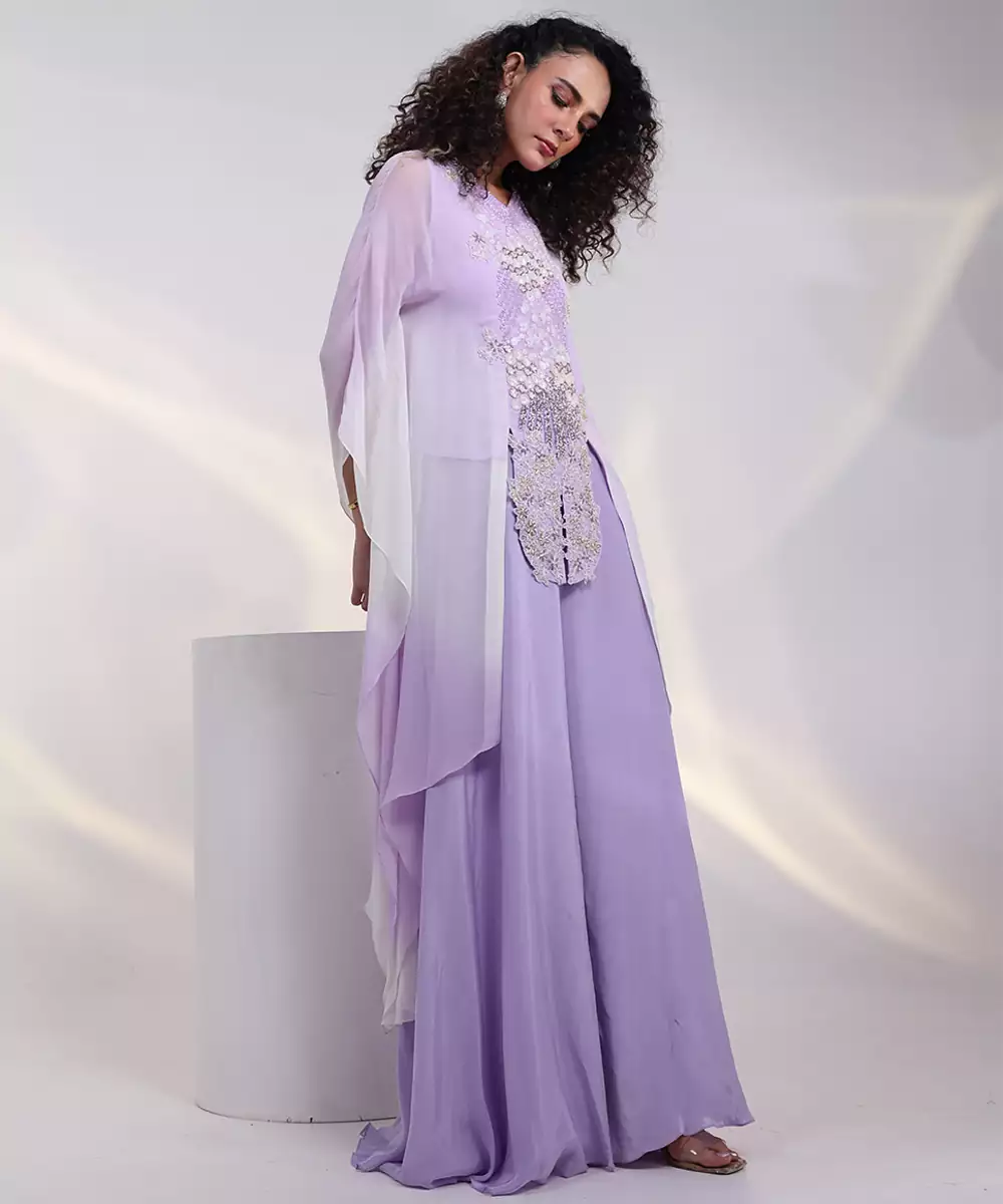 Embrace Effortless Elegance With This Lavender Embroidered Georgette Kaftan, Crafted In Airy Georgette For A Graceful Drape. Delicate Embroidery Enhances Its Refined Appeal, While The Relaxed Silhouette Ensures Comfort And Style, Making It Perfect For Festive Occasions, Evening Events, And Resort Inspired Celebrations.