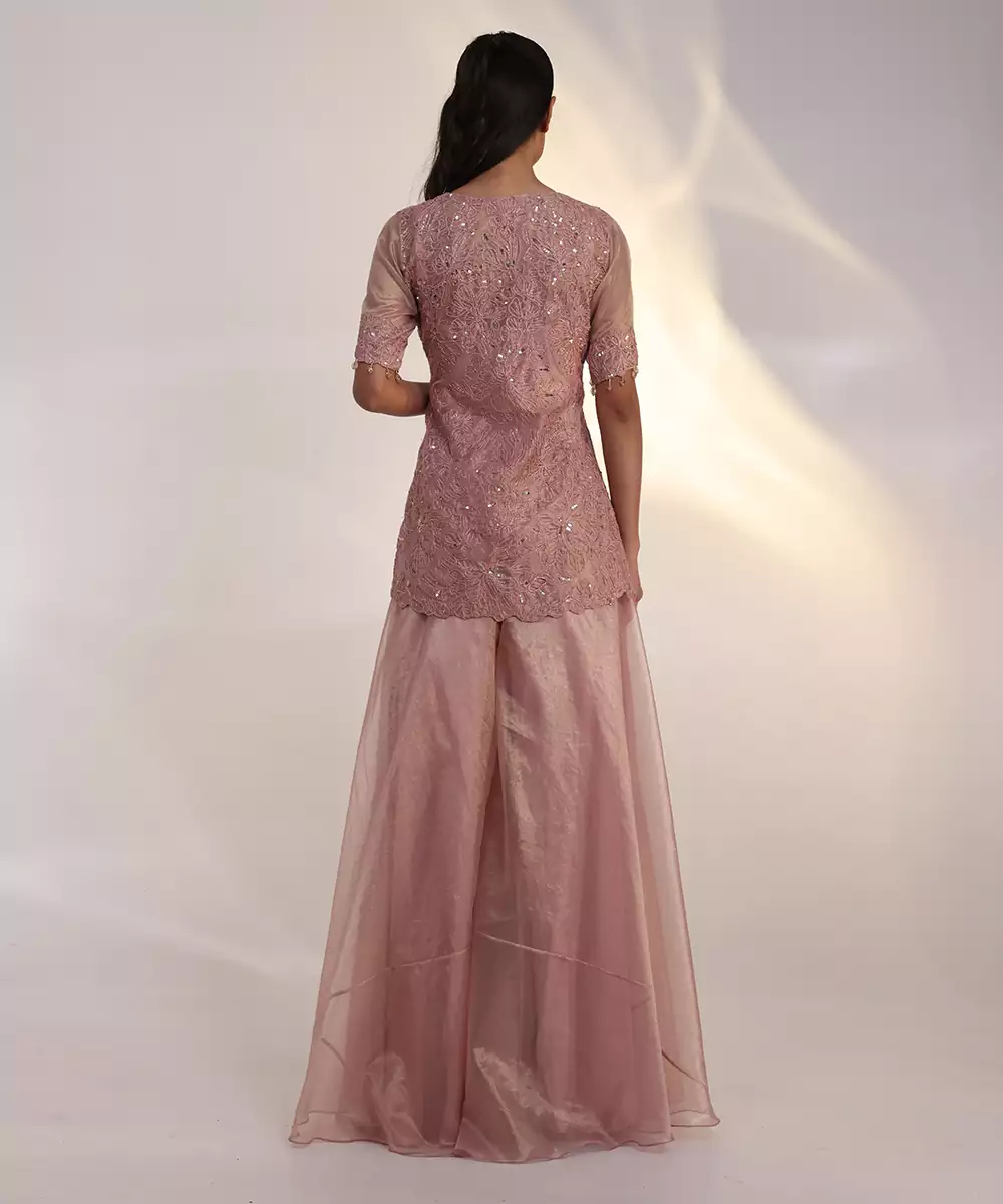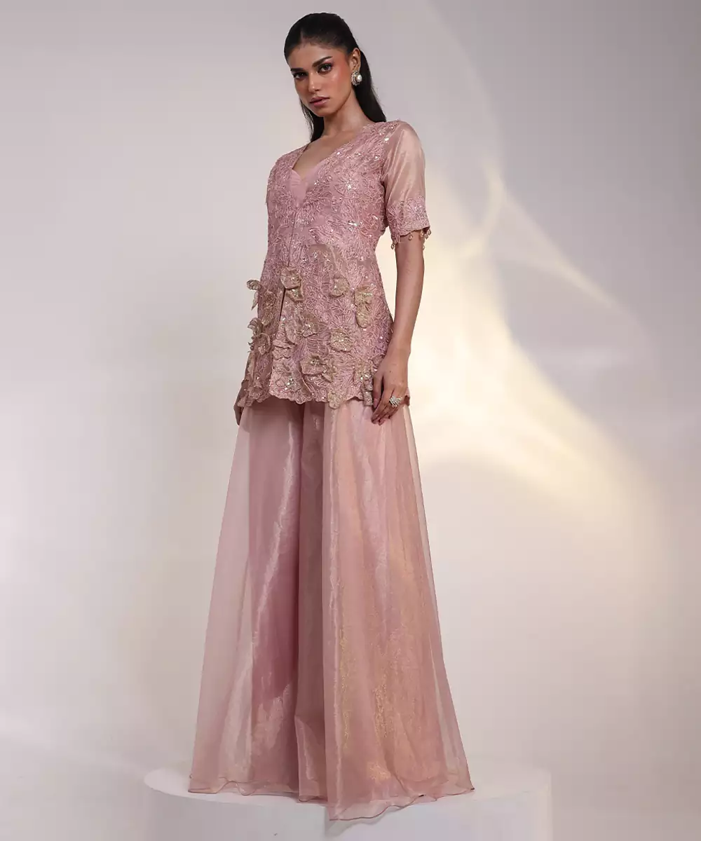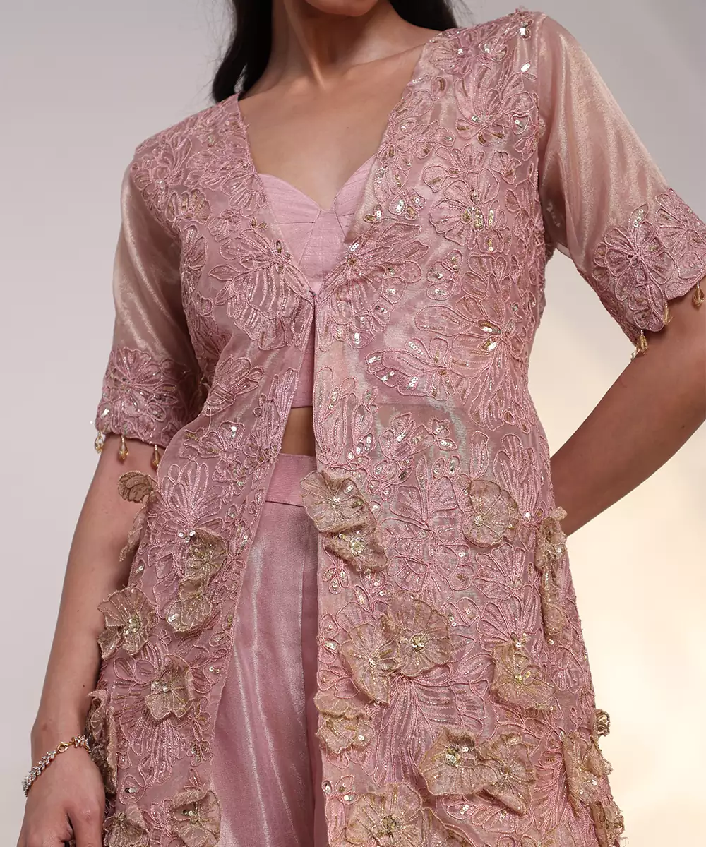 Add A Touch Of Elegance To Your Wardrobe With This Pink Embroidered Silk Jumpsuit. Crafted From Luxurious Silk Fabric, It Features Delicate Embroidery, A Refined Silhouette, And A Graceful Finish. Perfect For Festive Occasions, Parties, And Celebrations, It Effortlessly Combines Comfort With Sophisticated, Modern Ethnic Style.