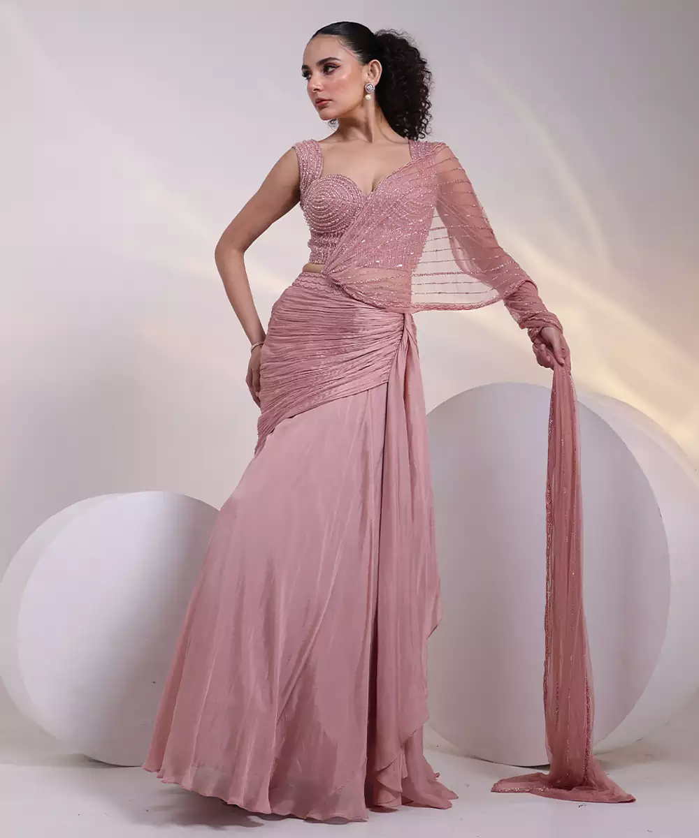 Elevate Your Festive Style With This Pink Embroidered Silk Lehenga Set. Crafted From Luxurious Silk, It Showcases Intricate Embroidery That Adds A Touch Of Elegance. The Coordinated Silhouette Offers Comfort And Sophistication, Making It Perfect For Celebrations, Festive Occasions, And Refined Evening Gatherings.