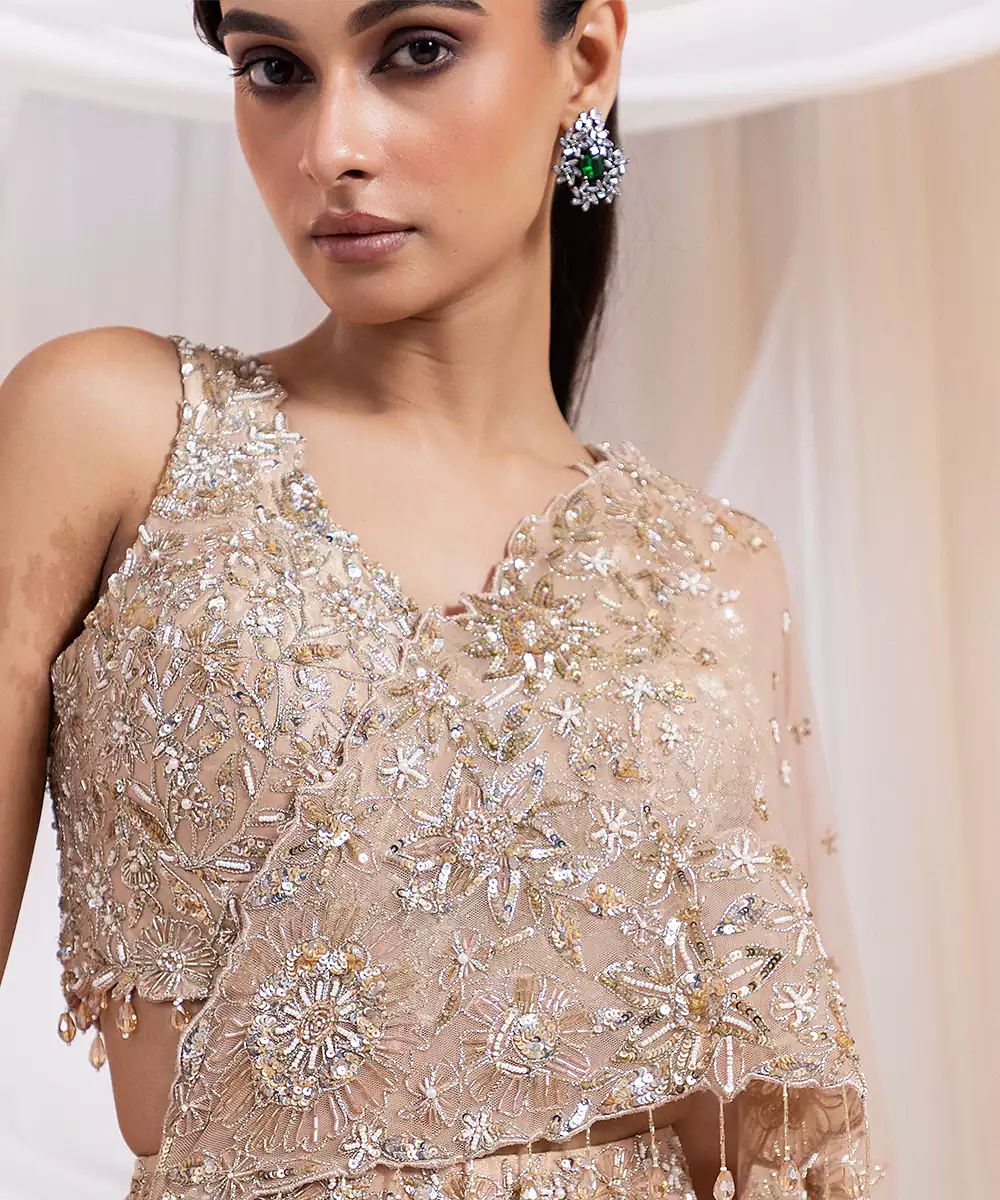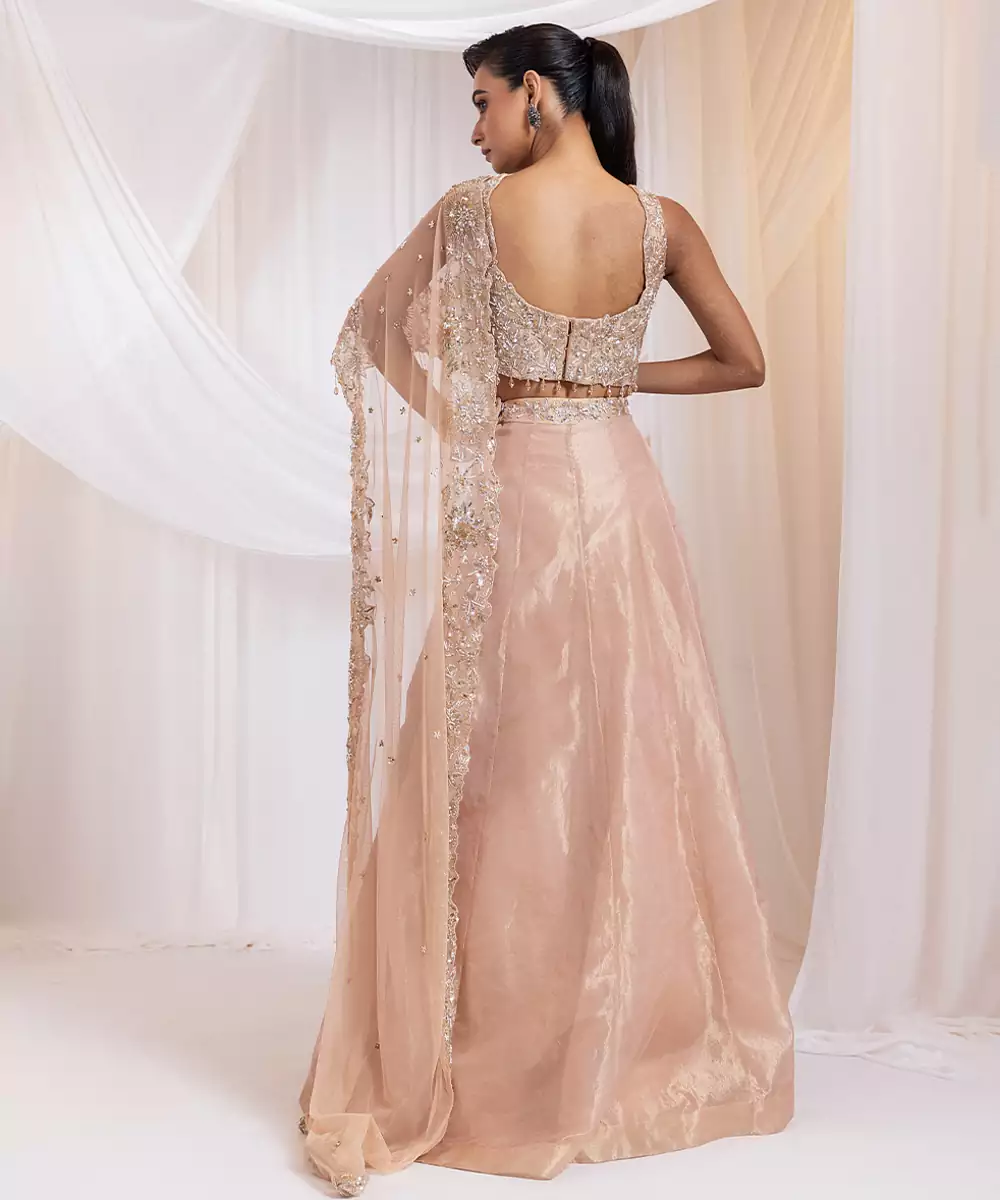 This Pink Embroidered Tissue Lehenga Set Radiates Delicate Charm With Its Lightweight, Shimmery Fabric And Gracefully Flared Silhouette. Intricate Embroidery Adds A Festive, Artisanal Touch, Enhancing Its Traditional Elegance. Perfect For Weddings, Celebrations, And Special Occasions, It Blends Comfort With Sophistication, Creating A Stylish And Timeless Ethnic Ensemble.
