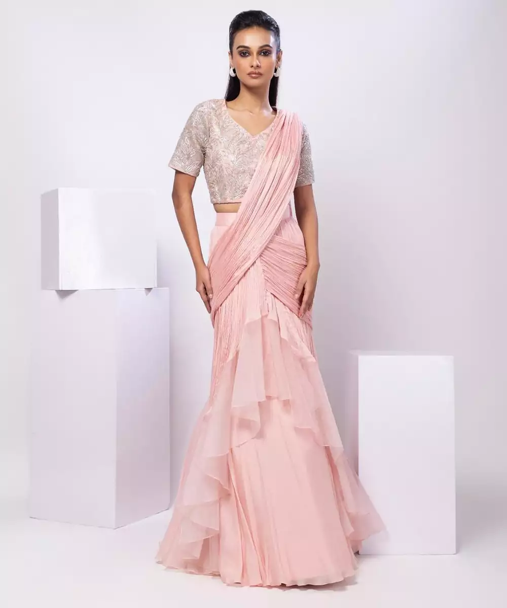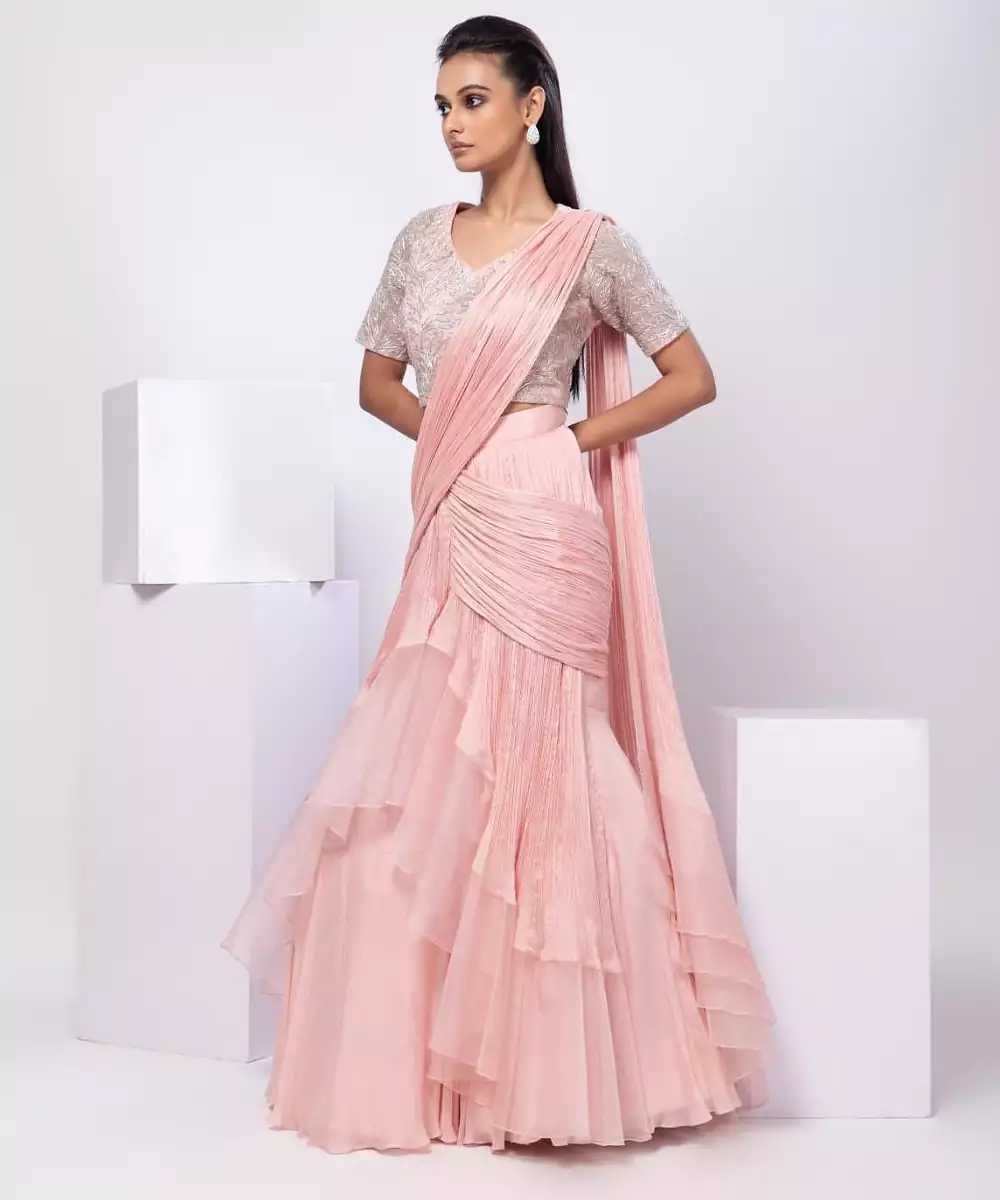 This Pink Plain Organza Saree With Belt Radiates Elegance And Modern Charm. Crafted From Lightweight, Sheer Organza Fabric, It Features A Sleek Plain Design Paired With A Stylish Belt That Enhances The Silhouette. Perfect For Weddings, Festive Celebrations, And Special Occasions, It Offers A Graceful Yet Contemporary Ethnic Look.