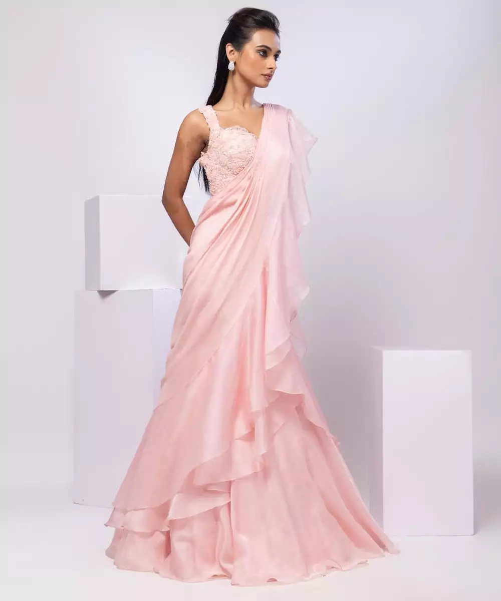 This Pink Plain Silk Saree With Belt Exudes Timeless Elegance And Sophistication. Crafted From Luxurious Silk Fabric, It Features A Sleek Plain Design Complemented By A Stylish Belt That Adds A Modern Touch. Perfect For Weddings, Festive Celebrations, And Special Occasions, It Offers A Graceful Blend Of Tradition And Contemporary Fashion.