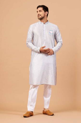 Powder Pink Cord Sleeve Straight Kurta Paired With Pant Pajama.
