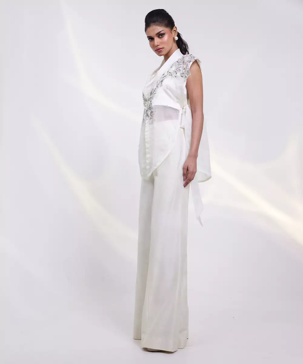 Elevate Your Style With This White Embroidered Silk Co Ord Set, Crafted In Luxurious Silk Fabric. Featuring Delicate Embroidery And A Refined Silhouette, This Elegant Set Offers A Perfect Balance Of Comfort And Sophistication. Ideal For Festive Occasions, Parties, And Special Celebrations, It Delivers Timeless Charm With A Modern Touch.