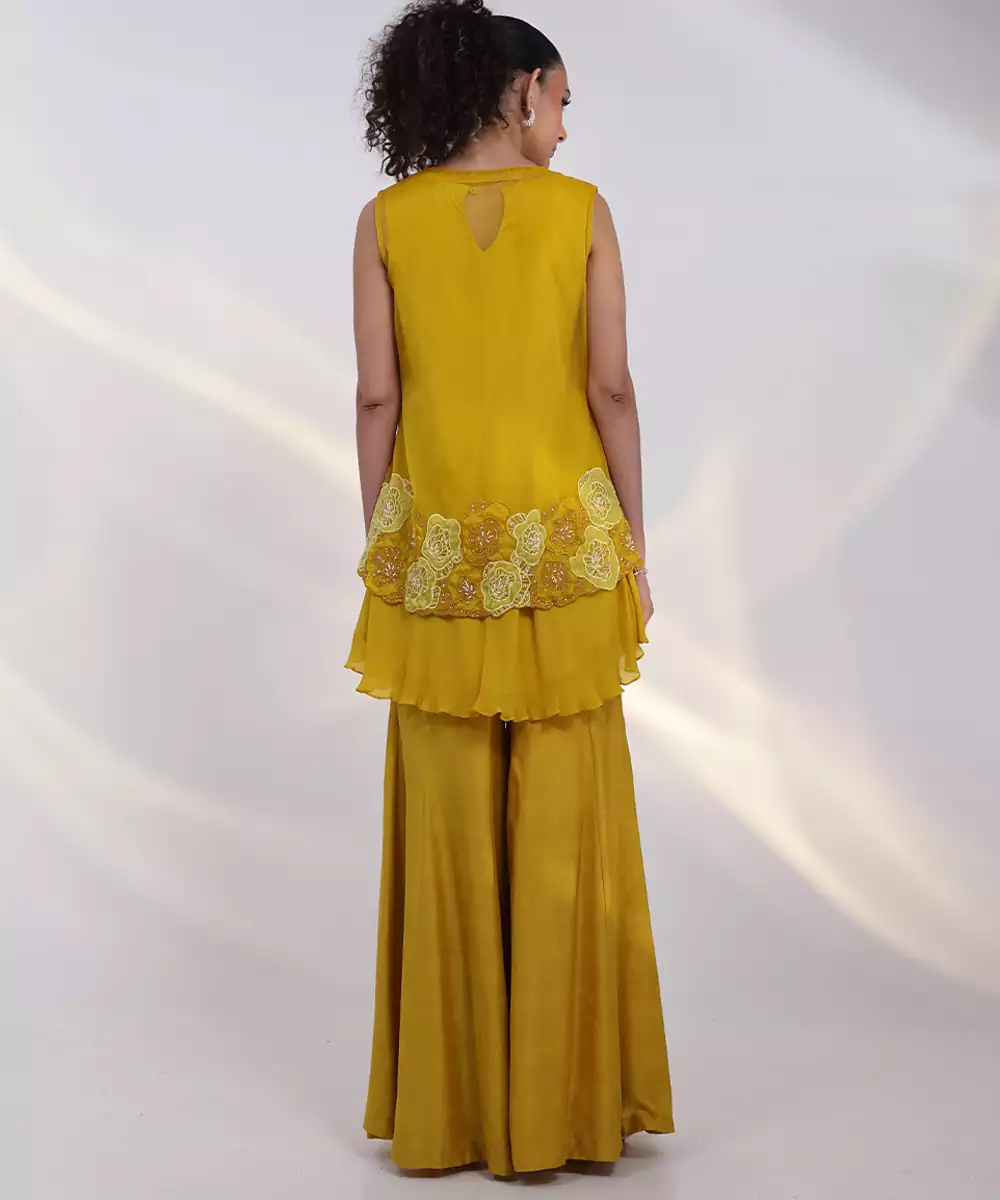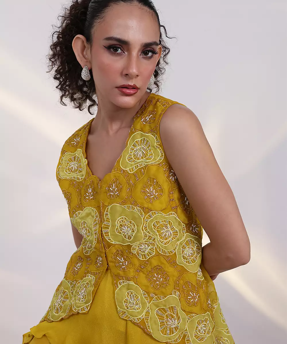 Brighten Your Wardrobe With This Yellow Embroidered Chinon Co Ord Set, Designed In Airy Chinon For Effortless Elegance. Adorned With Intricate Embroidery, It Offers A Perfect Balance Of Comfort And Style, Making It Ideal For Festive Celebrations, Daytime Events, And Chic Casual Gatherings.