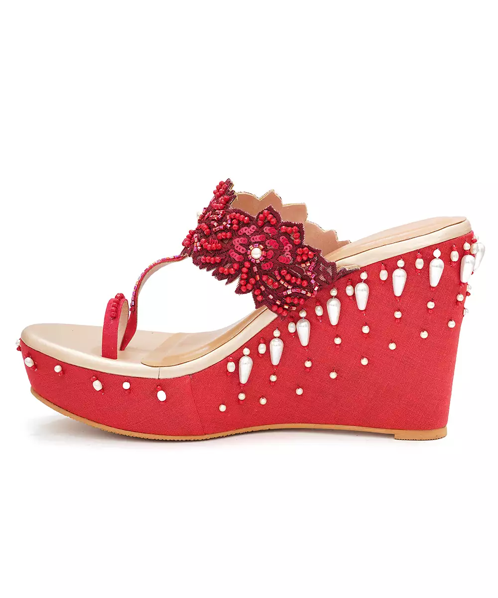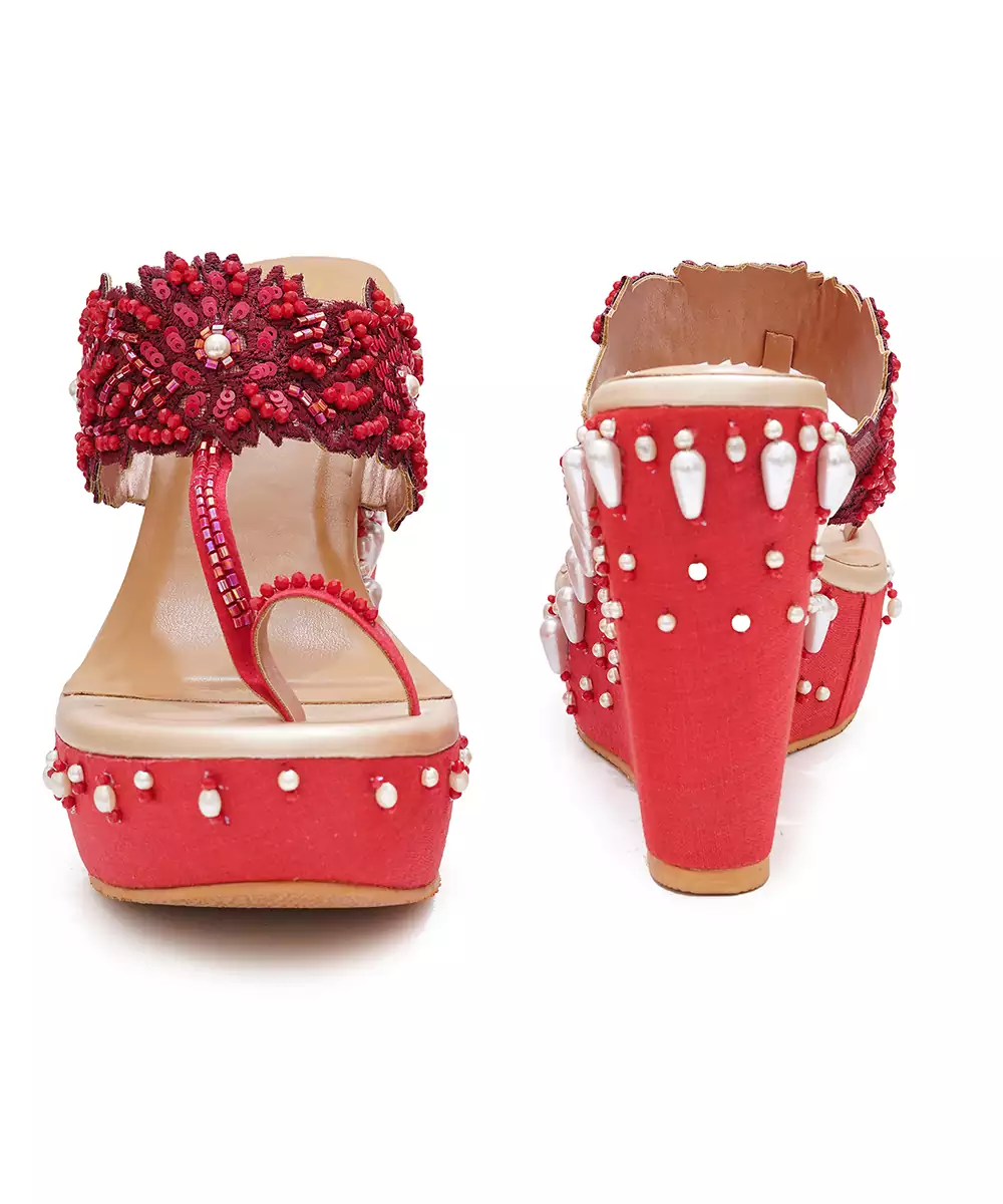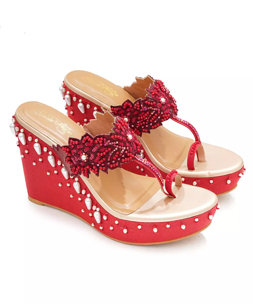 These Red Woven Wedge Heels Blend Vibrant Style With All Day Comfort. Featuring A Chic Woven Design And Bold Red Hue, They Provide Stability With Their Sturdy Wedge Base. Perfect For Festive Occasions, Parties, Or Casual Outings, These Heels Add A Fashionable And Versatile Touch To Any Modern Wardrobe.