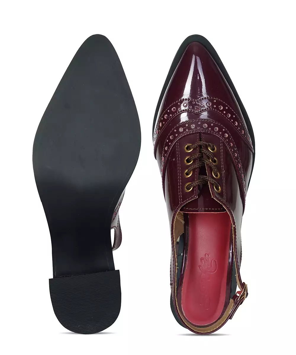 Deep Maroon , Brouge Cutiing Sling Back With 3 Inch Block Heels With Comfort Grip.