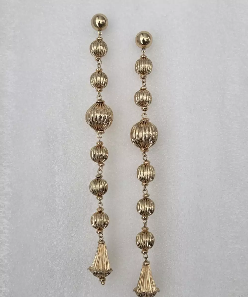 Add Some Flair To Your Outfit With These Quirky Textured Gold Bead Dangler Earrings. These Unique Earrings Feature Textured Gold Beads That Add A Touch Of Playfulness To Any Look. Don't Be Afraid To Show Off Your Fun Side With These Earrings!