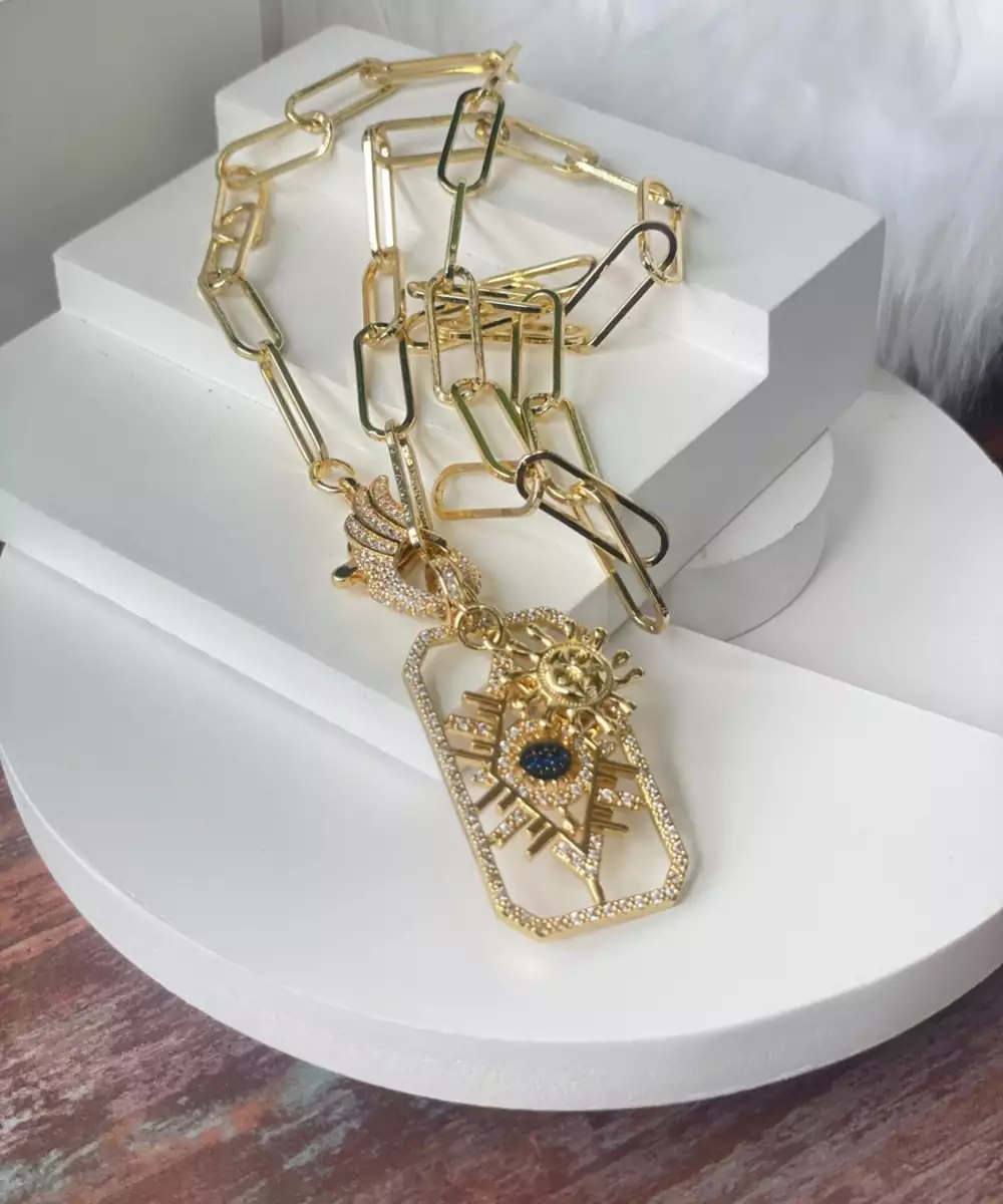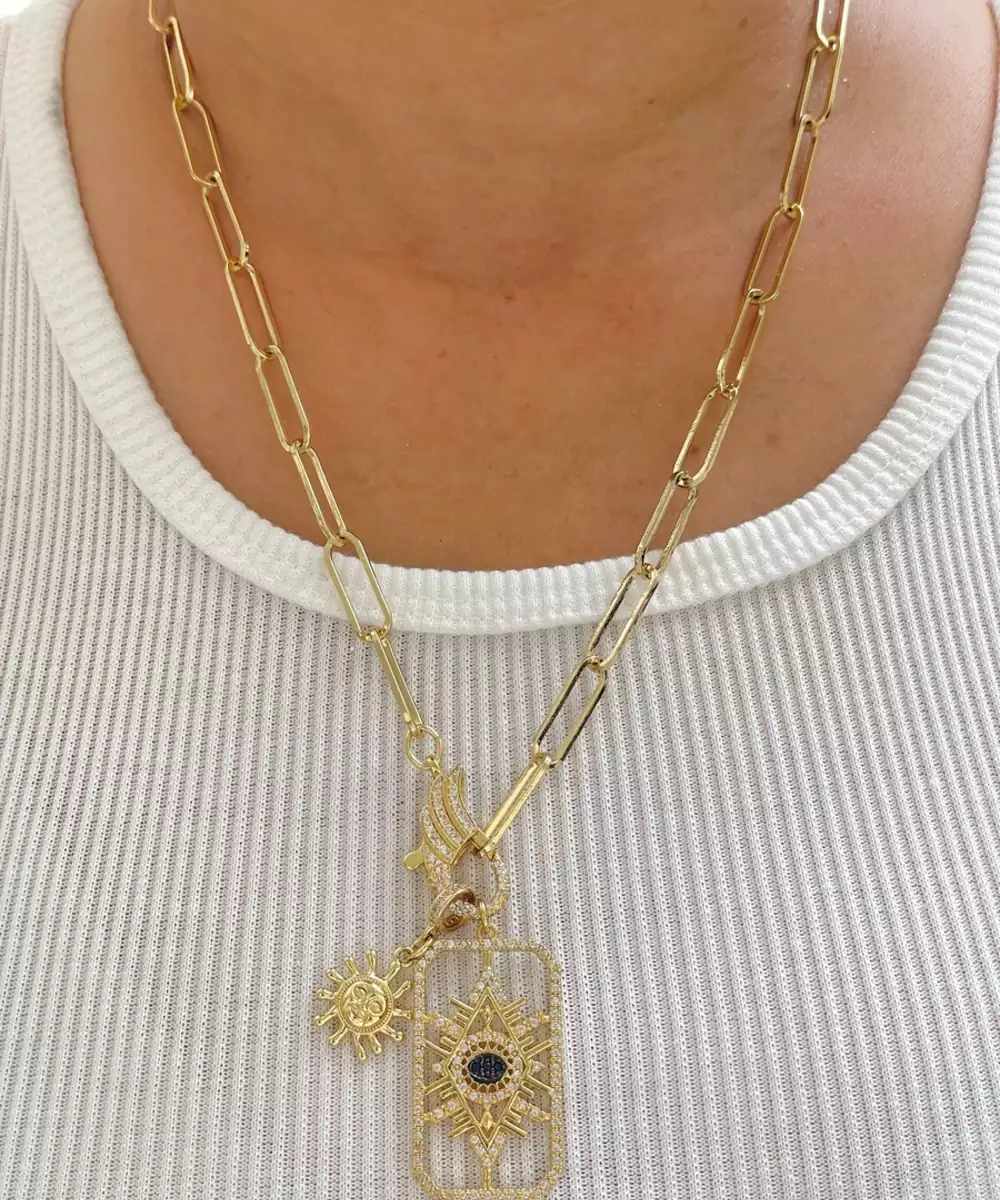 Defend Against Envious Glances With This Stunning Link Chain Evil Eye Zircon Gold Plated Necklace! Crafted With A Beautiful Zircon, This Necklace Will Be Sure To Turn Heads And Keep You Safe From Any Evil Intent! Hurry And Snatch Up This Fashionable Shield Before Someone Else Does!