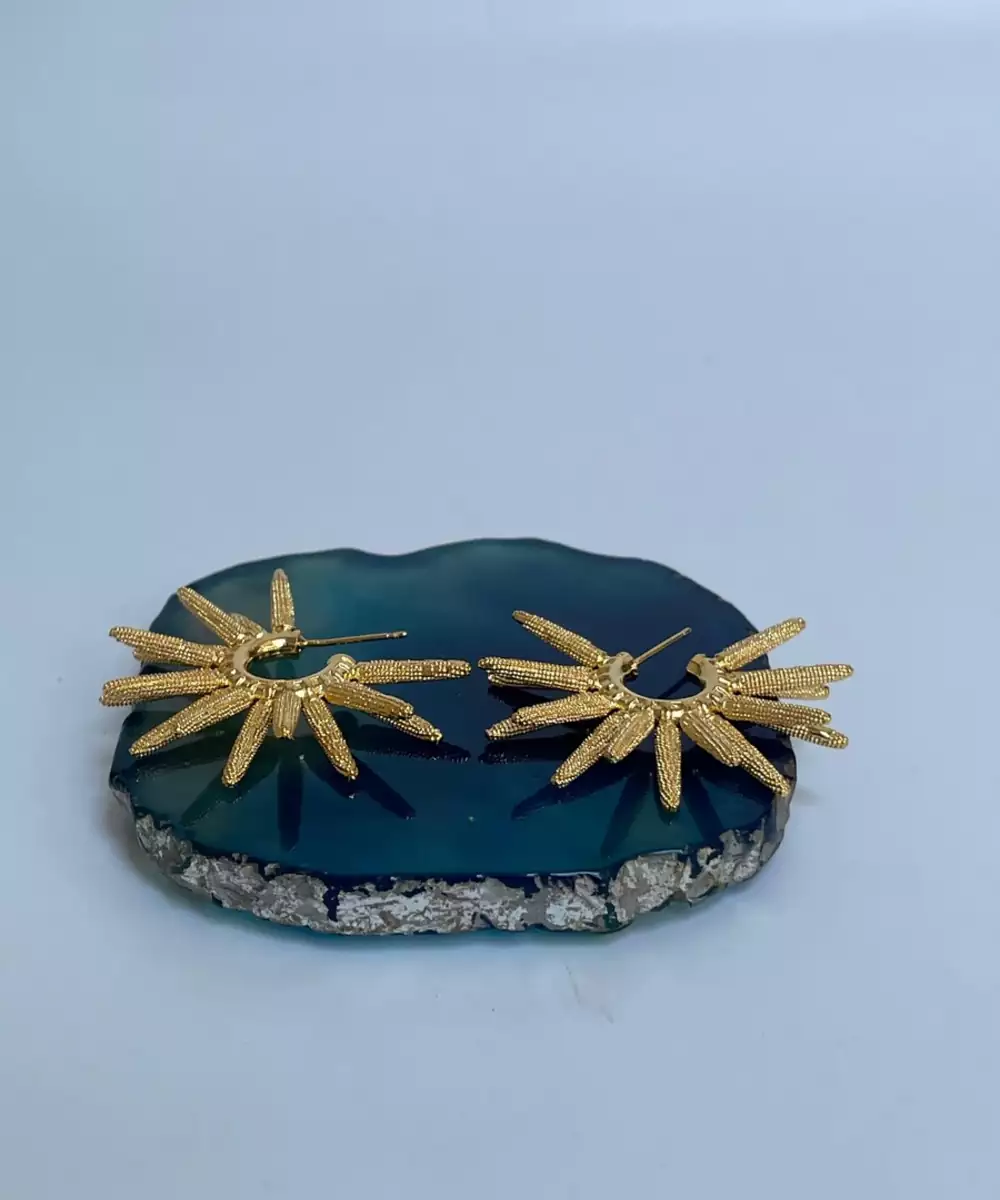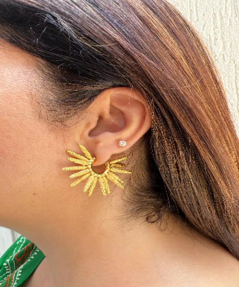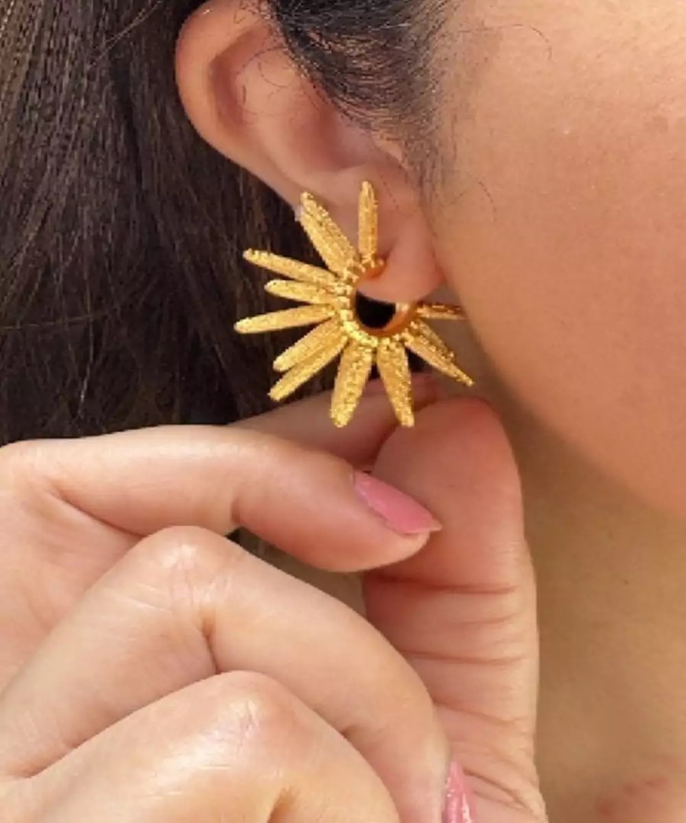 Add A Little Sunshine To Any Outfit With Our Textured Sunray Studs. These Unique Studs Feature A Playful Sunray Design That Will Brighten Up Your Day. With Their Textured Surface, They Add An Extra Touch Of Interest And Style. Perfect For Adding A Fun Touch To Any Look.