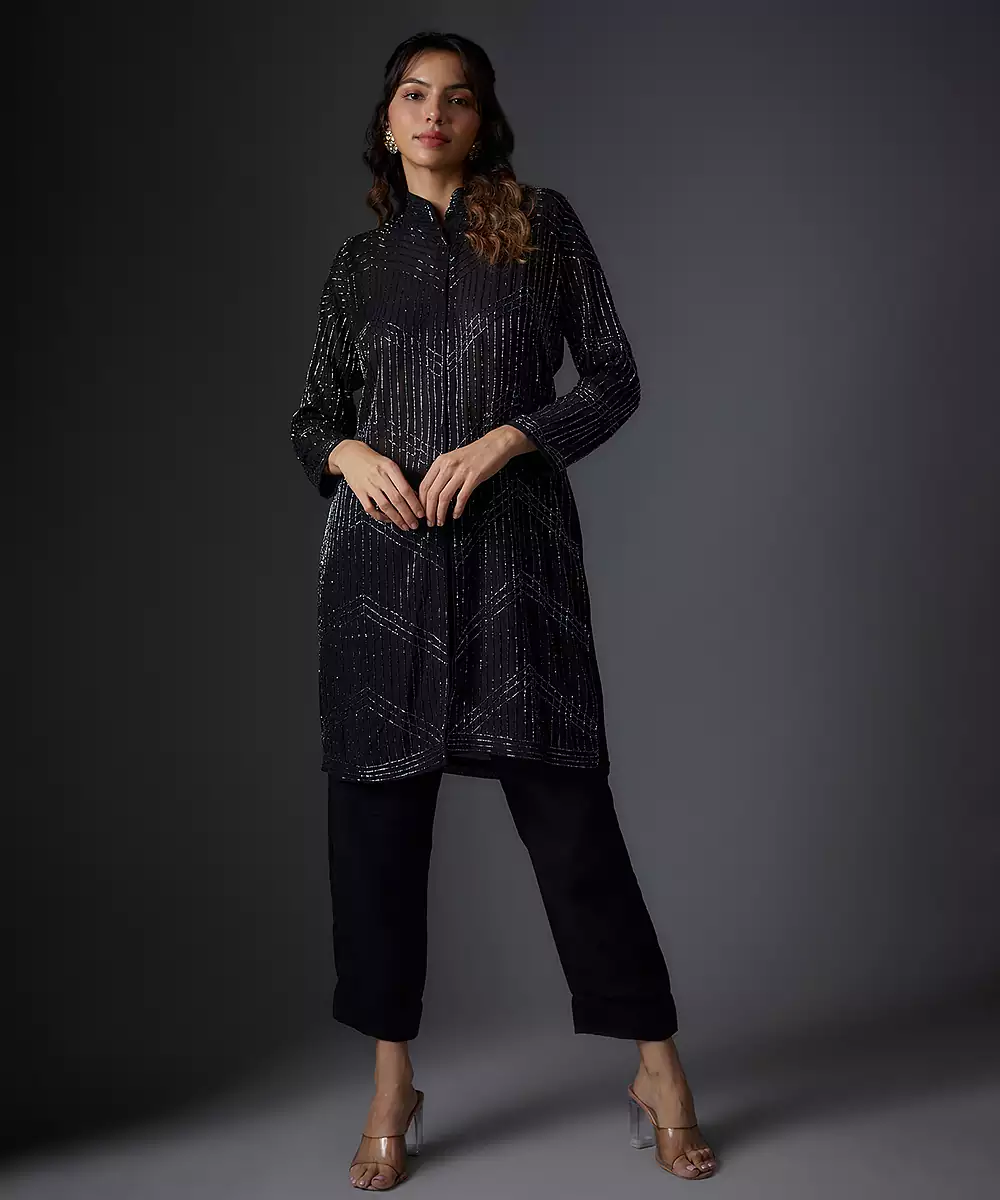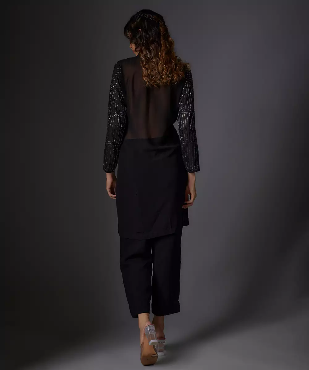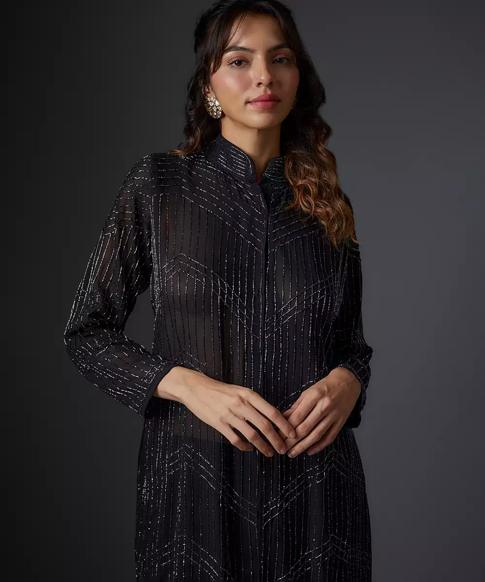 This Black Embroidered Georgette Co Ord Set Blends Contemporary Style With Traditional Finesse. The Lightweight, Flowy Georgette Fabric Offers Graceful Movement, While Intricate Embroidery Elevates Its Festive Charm. Designed For Comfort And Elegance, It’s An Ideal Choice For Parties, Celebrations, And Special Occasions, Delivering A Modern Yet Sophisticated Look.