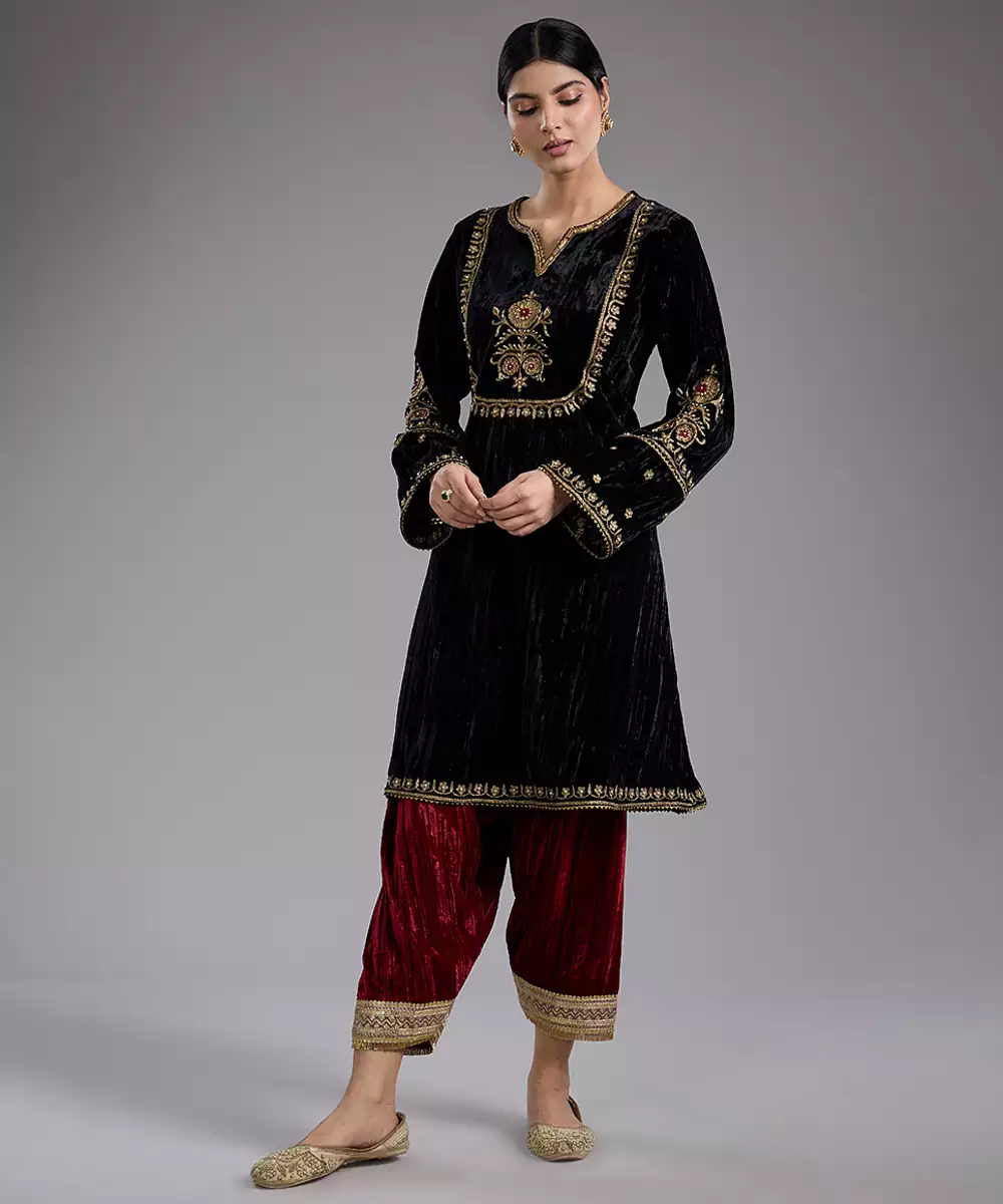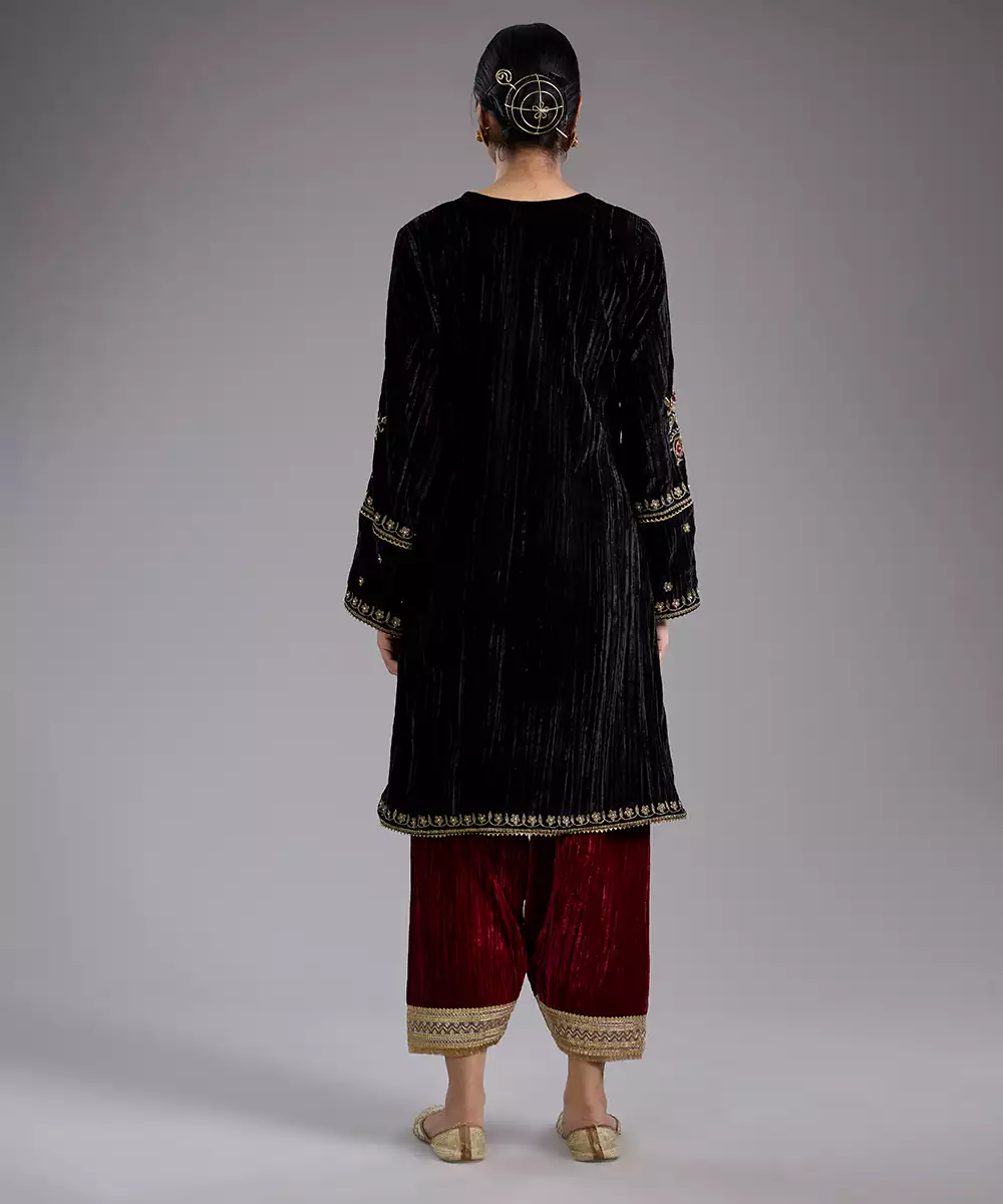 Black Embroidered Velvet Kurta Set