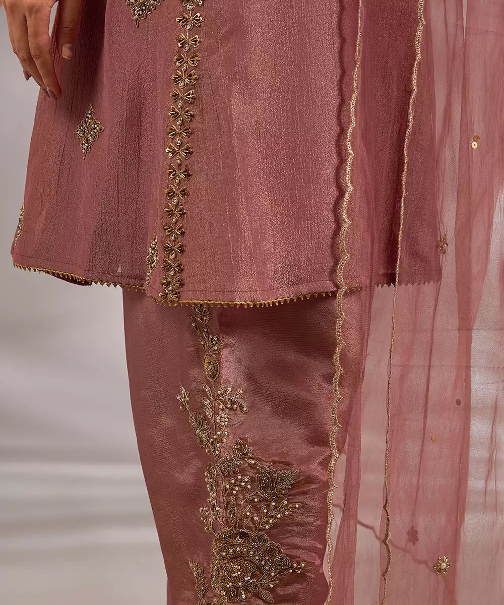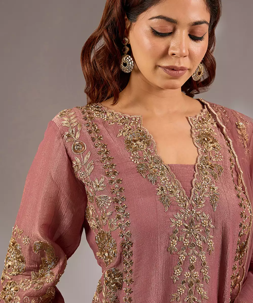 This Pink Embroidered Net Anarkali Radiates Feminine Charm With Its Lightweight, Sheer Fabric And Flowing, Flared Silhouette. Delicate Embroidery Adds A Festive, Artisanal Touch, Enhancing Its Traditional Elegance. Perfect For Weddings, Celebrations, And Special Occasions, It Blends Comfort With Sophistication, Creating A Stylish And Timeless Ethnic Ensemble.