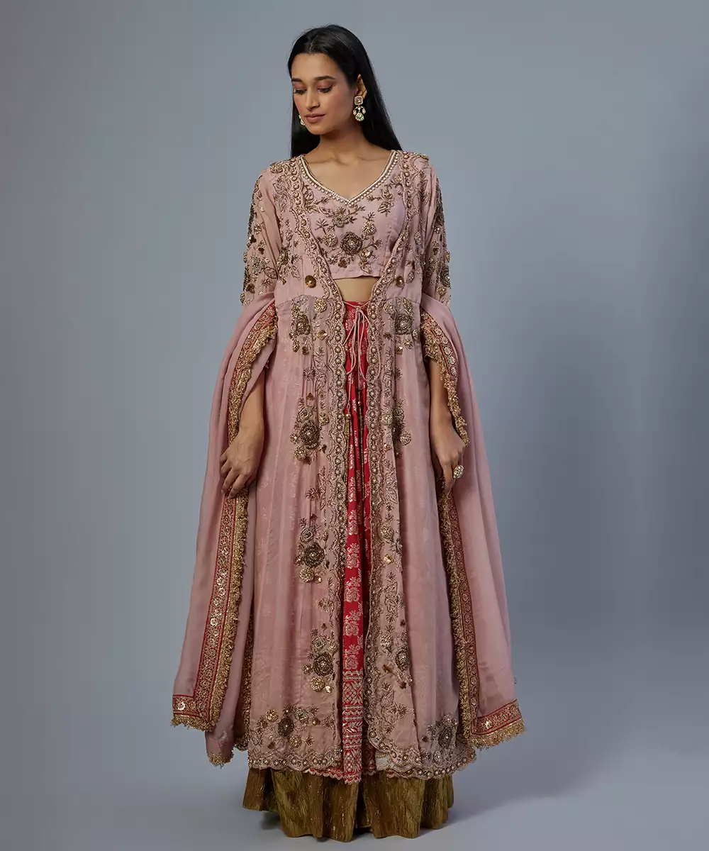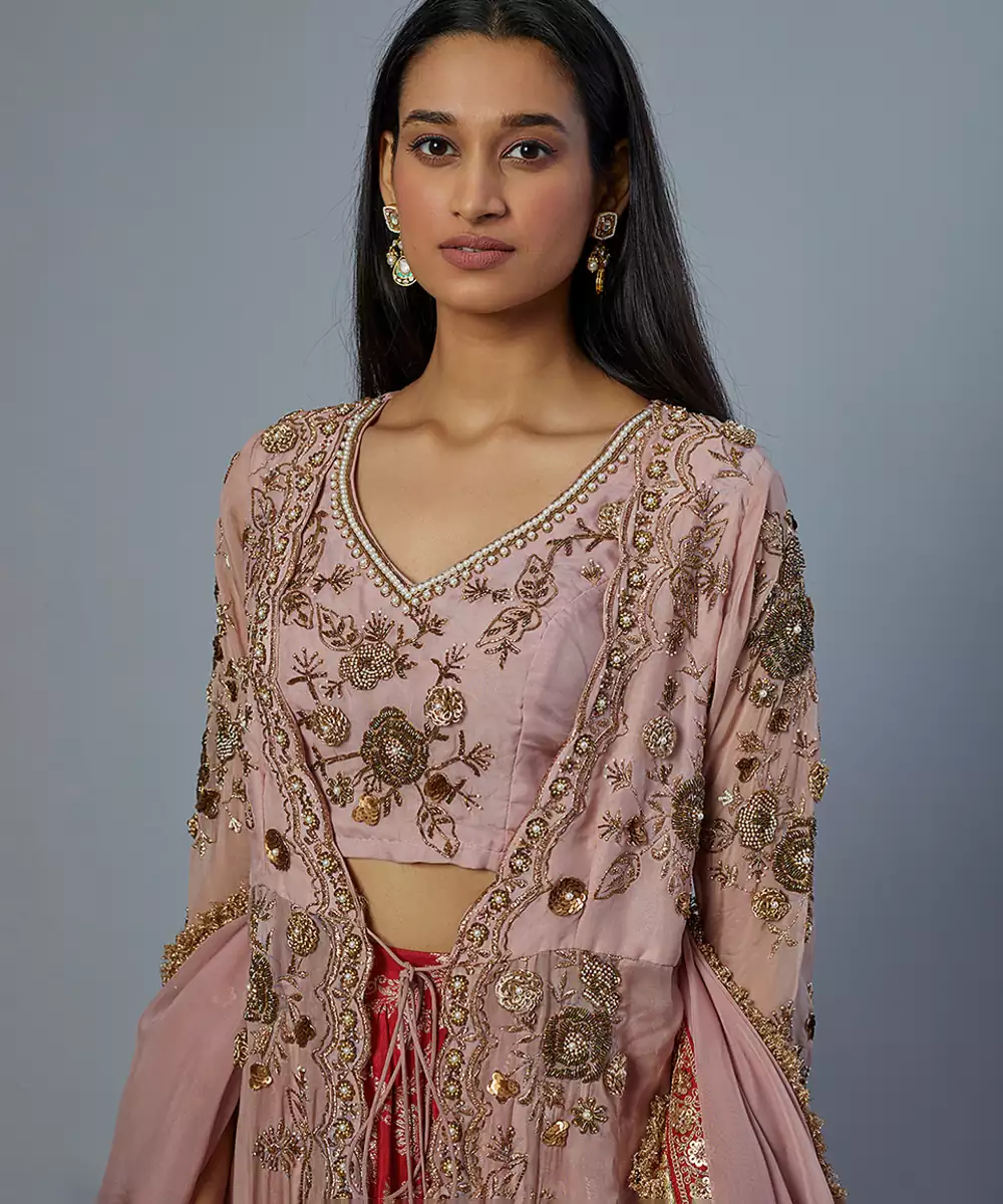 Components: 1 Blouse / 1 Lehenga / 1 Shrug / 1 Dupatta