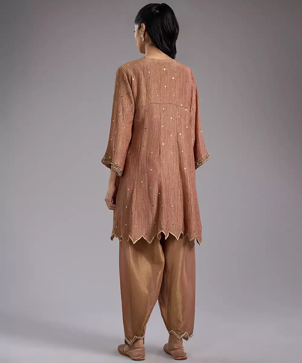 This Pink Embroidered Tissue Kurta Set Radiates Delicate Elegance With Its Lightweight, Shimmery Fabric And Graceful Drape. Intricate Embroidery Adds A Festive, Artisanal Touch, Enhancing Its Traditional Charm. Perfect For Weddings, Parties, And Special Occasions, It Blends Comfort With Sophistication, Creating A Stylish And Timeless Ethnic Ensemble.