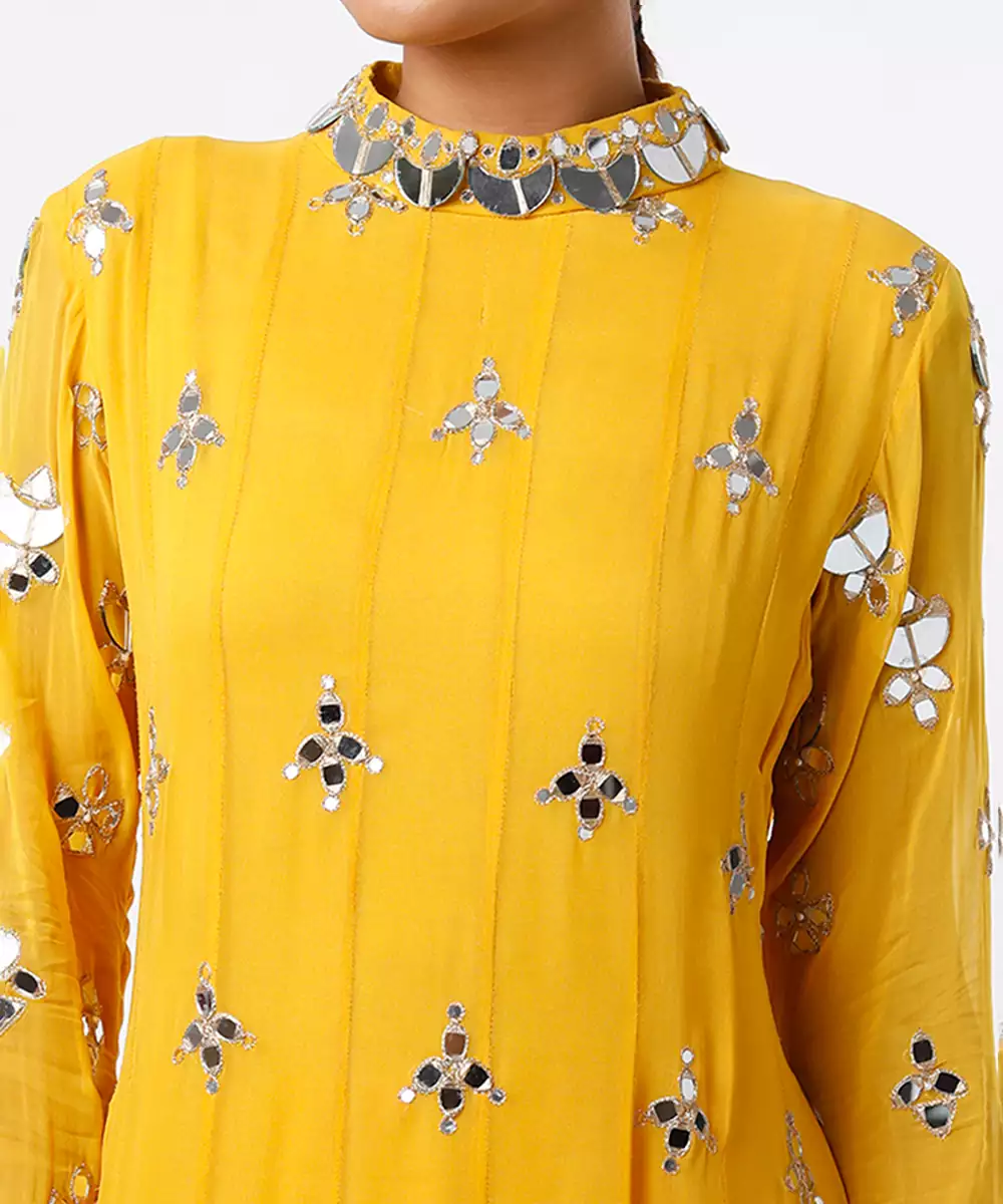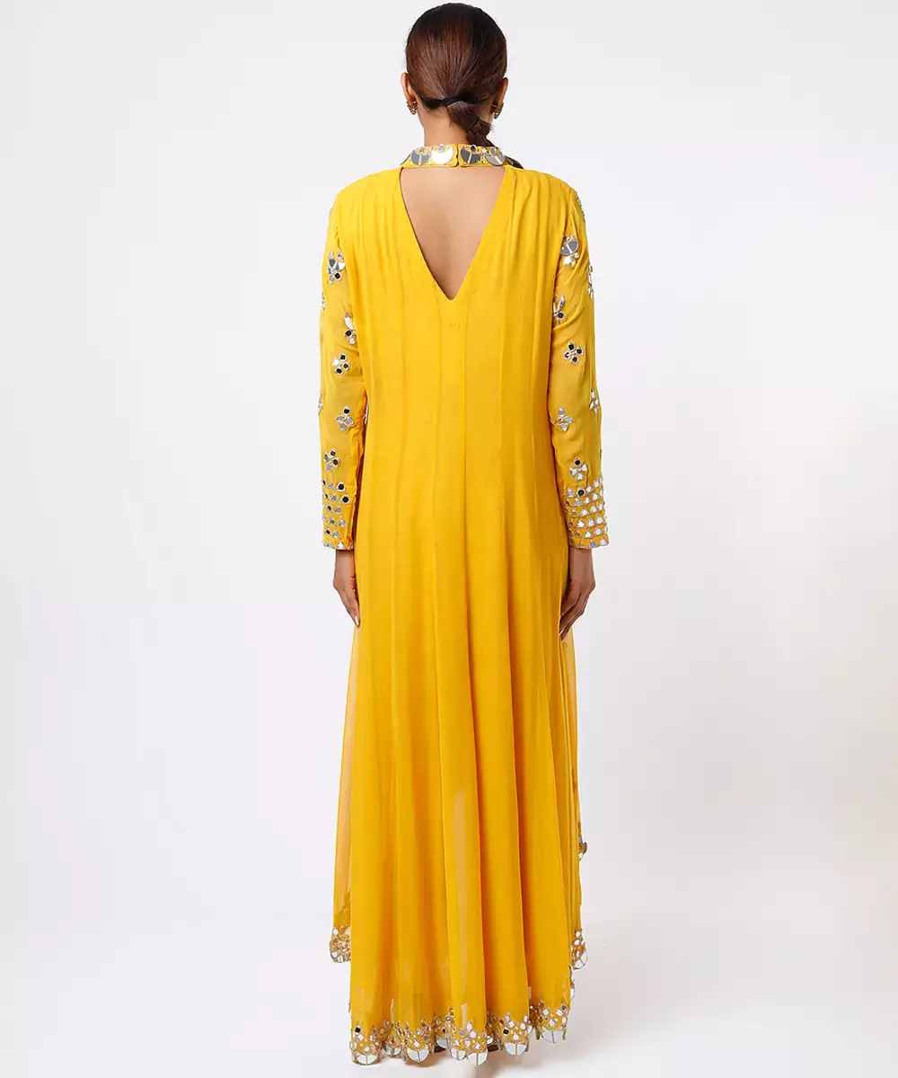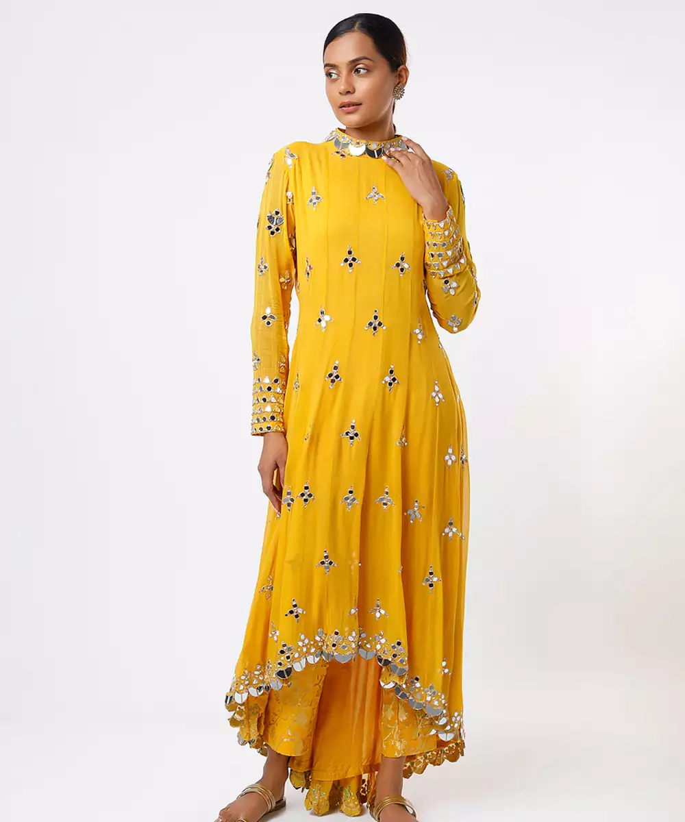 This Yellow Embroidered Georgette Kurta Set Radiates Vibrant Elegance With Its Flowy Silhouette And Lightweight Drape. Intricate Embroidery Highlights Its Festive Charm, While The Soft Georgette Fabric Ensures All Day Comfort. Paired With Coordinated Bottoms And A Dupatta, It’s Perfect For Celebrations, Weddings, And Special Occasions That Call For Bright, Graceful Style.