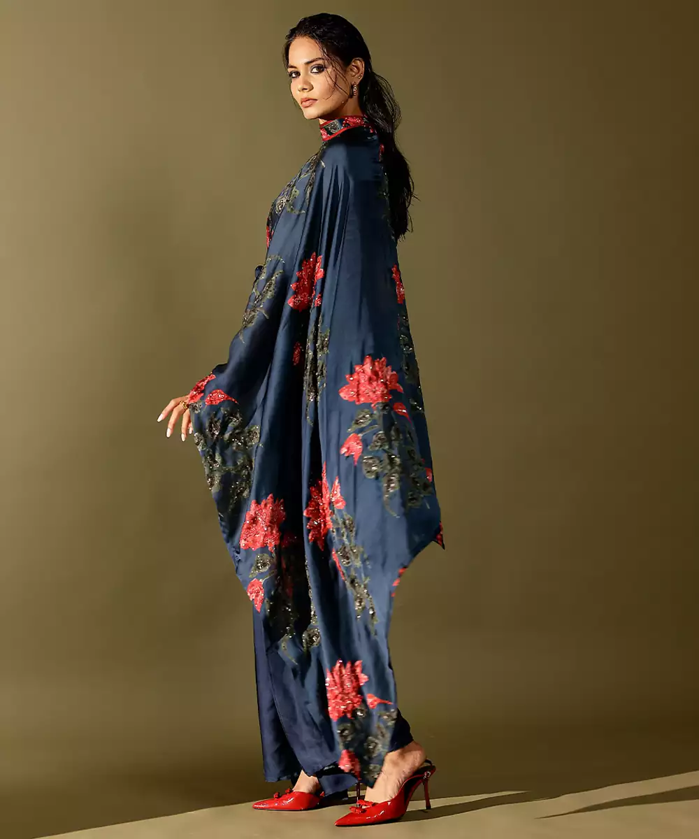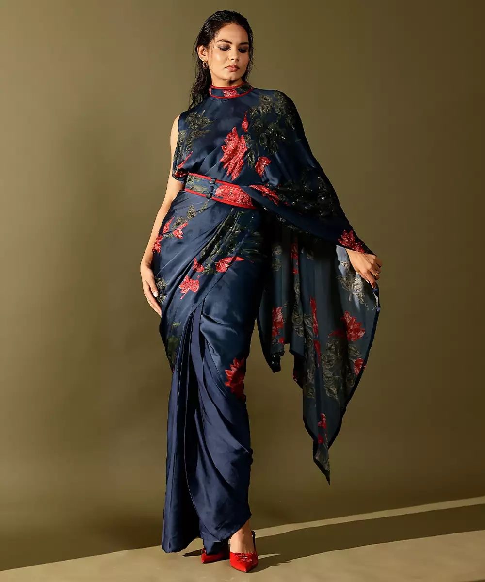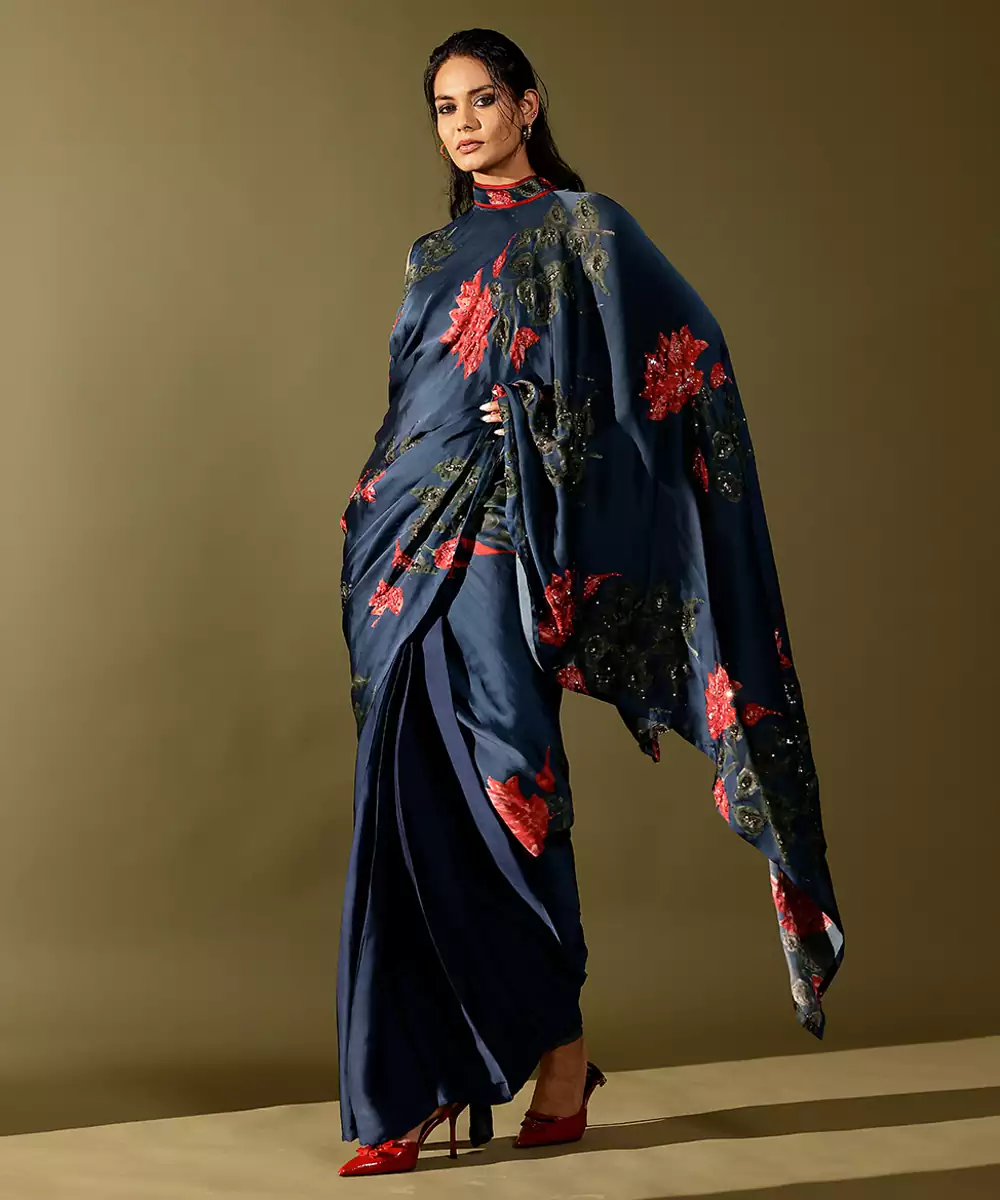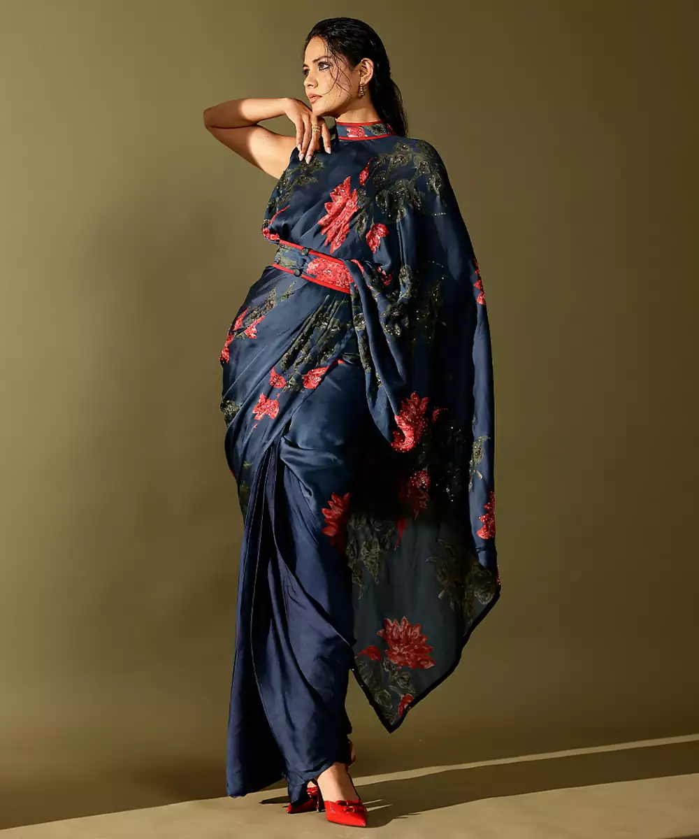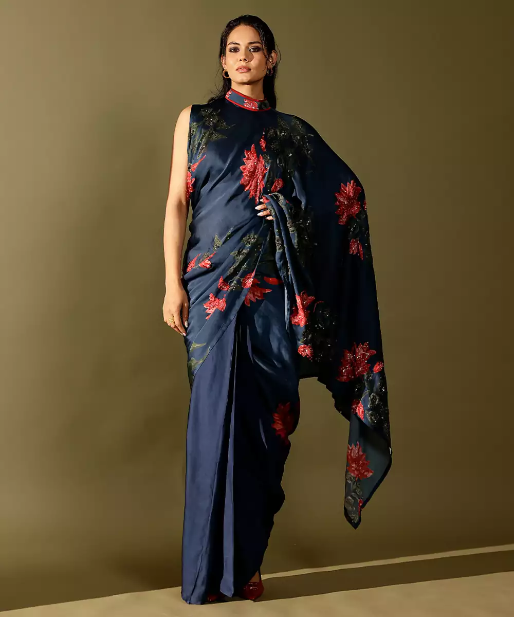 This Blue Embroidered Georgette Saree Radiates Graceful Sophistication With Its Flowing Drape And Lightweight, Airy Texture. Intricate Embroidery Adds A Touch Of Festive Artistry, Enhancing Its Rich, Elegant Hue. Perfect For Weddings, Receptions, And Special Occasions, It Blends Comfort With Timeless Charm For A Stunning, Refined Ethnic Look.