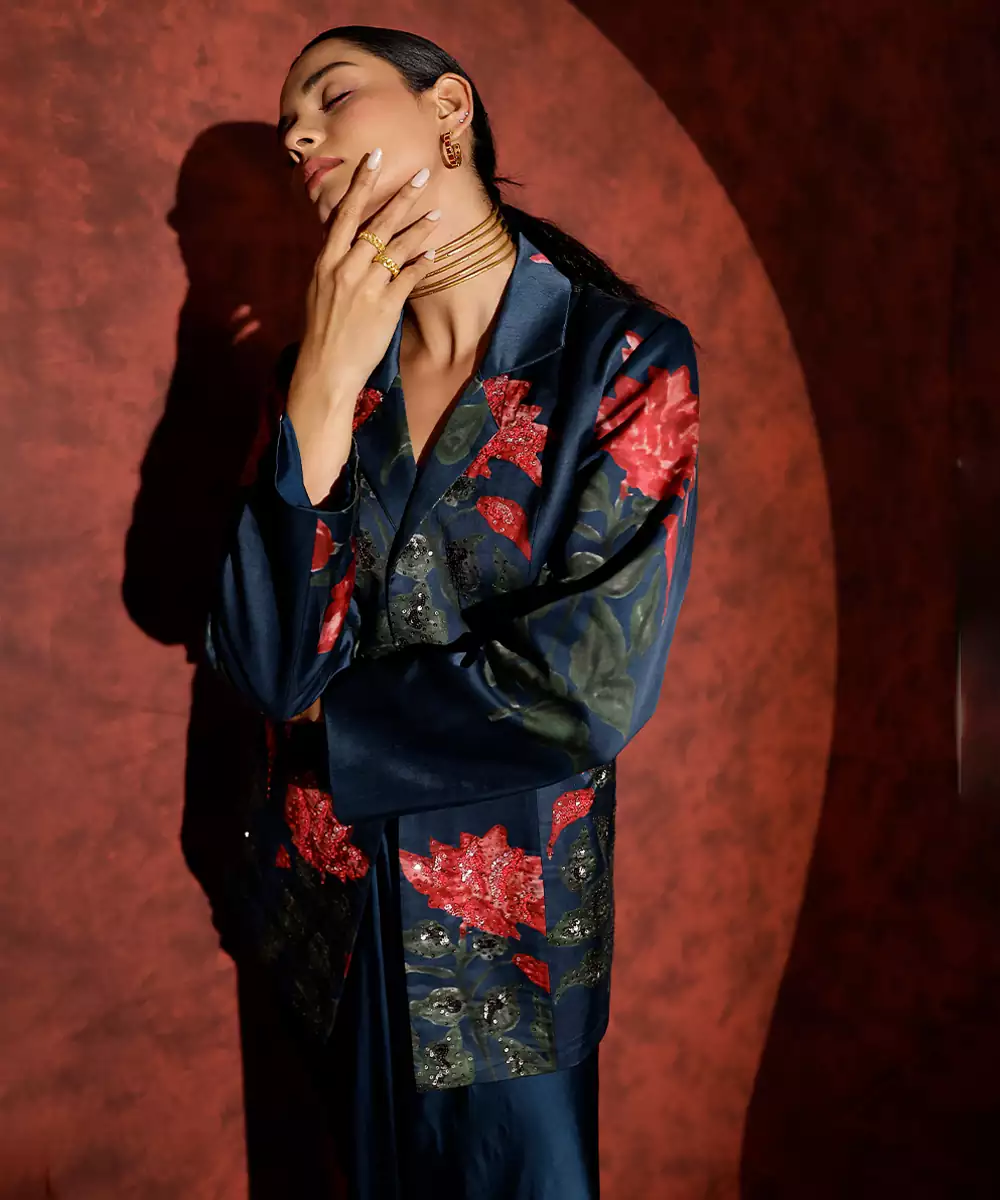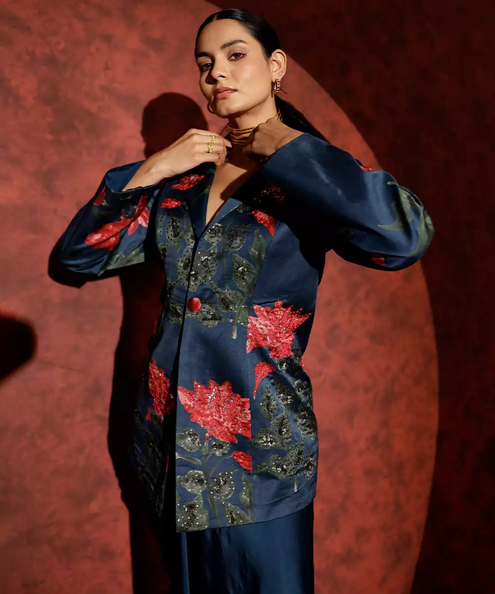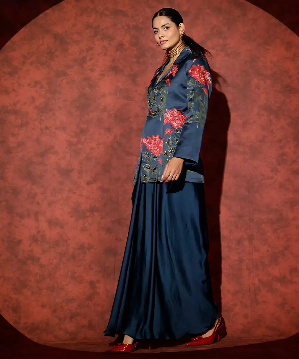 This Blue Printed Georgette Co Ord Set Radiates Breezy Elegance With Its Vibrant Patterns And Fluid Drape. The Lightweight Georgette Fabric Offers Effortless Comfort, While The Lively Prints Add A Chic, Festive Touch. Perfect For Celebrations, Daytime Events, And Casual Gatherings, It Blends Style With Easy Sophistication For A Standout Look.