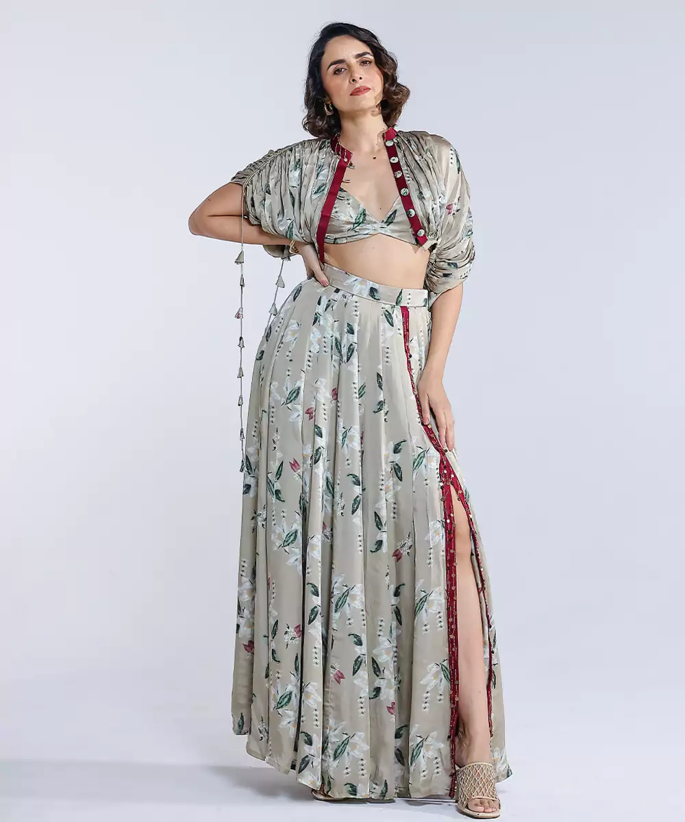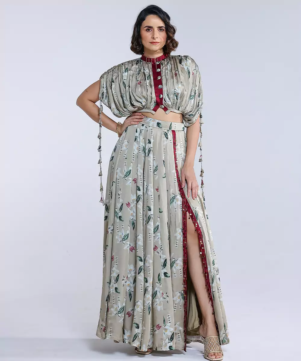 This Green Printed Georgette Co Ord Set Exudes Breezy Elegance With Its Fluid Drape And Refreshing, Nature Inspired Prints. The Lightweight Georgette Fabric Offers Airy Comfort, While The Coordinated Silhouette Adds A Chic, Contemporary Touch. Perfect For Festive Gatherings, Daytime Events, And Casual Outings, It Blends Effortless Style With Modern Sophistication.