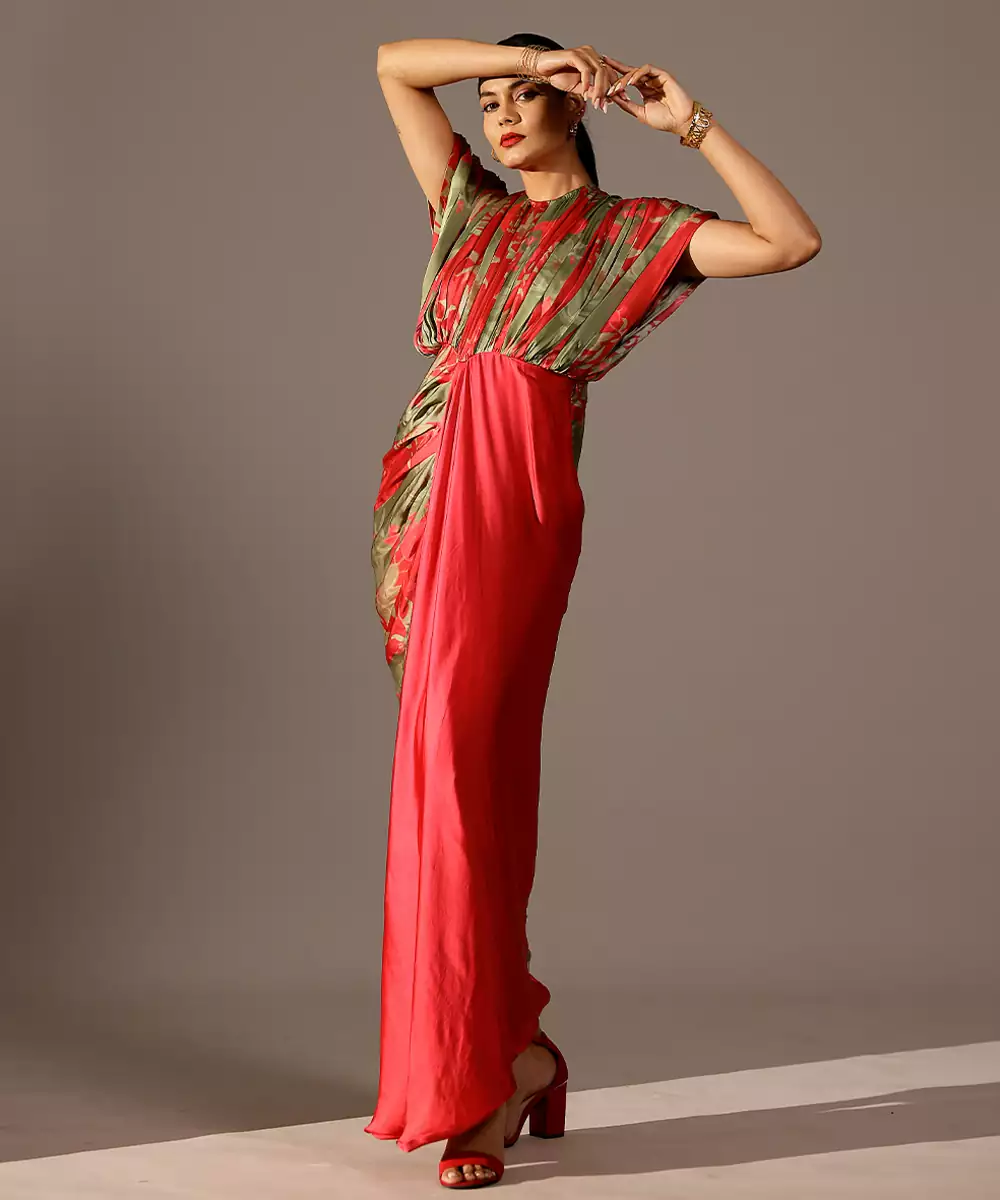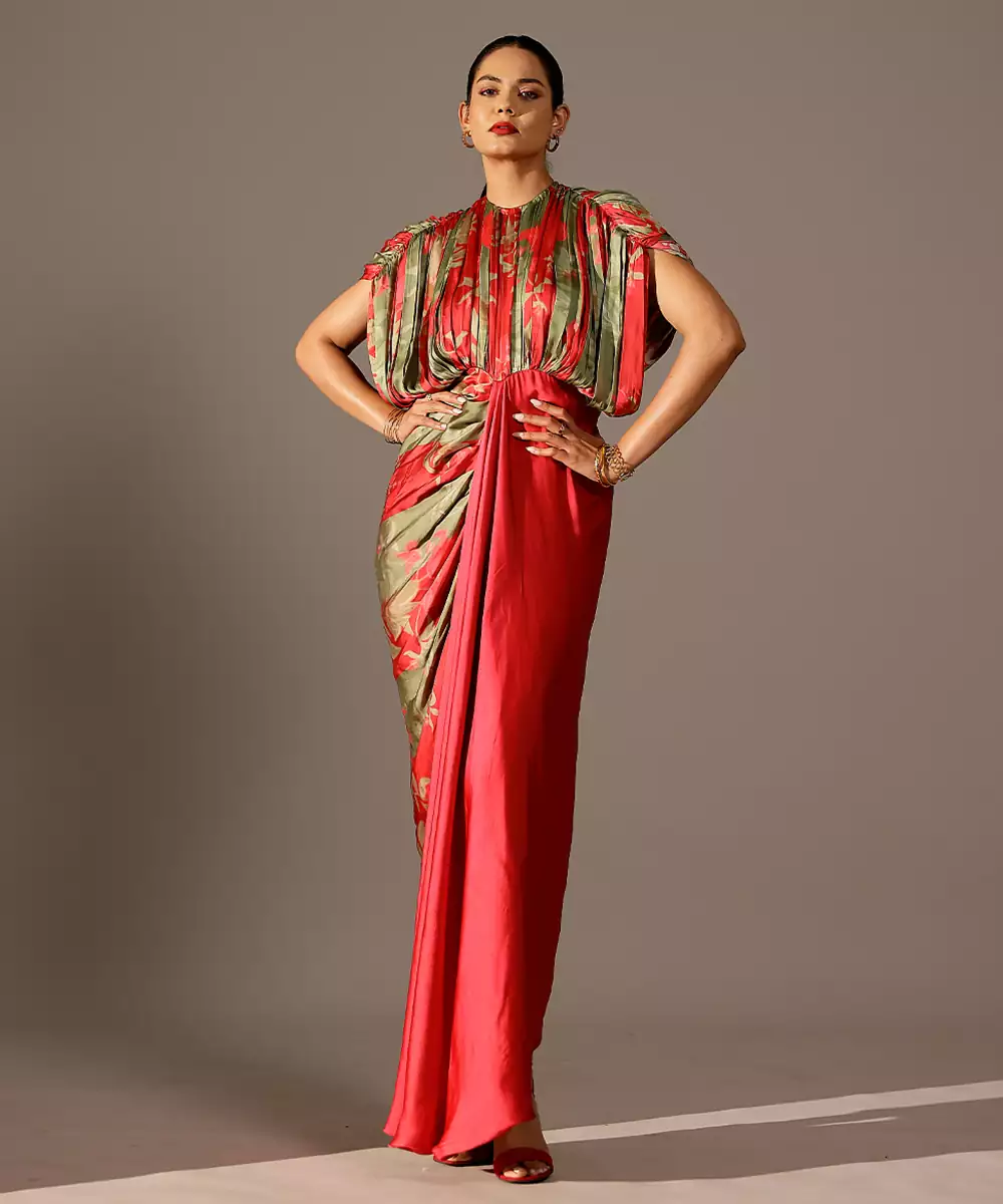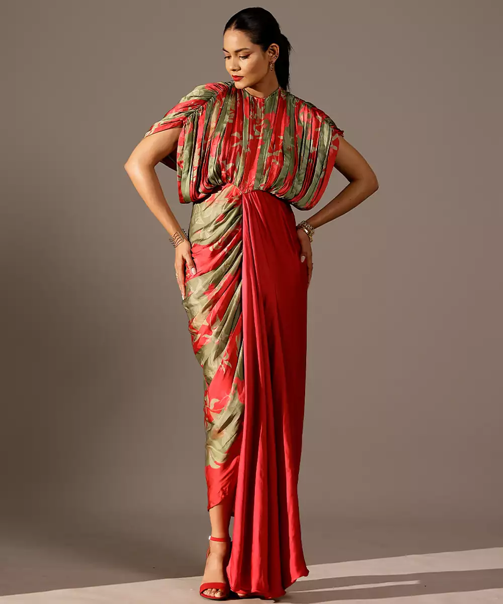 This Multicolor Printed Georgette Gown Radiates Graceful Charm With Its Vibrant Hue And Flowing Silhouette. The Lightweight Georgette Fabric Drapes Beautifully, While The Delicate Prints Add A Touch Of Artistic Elegance. Perfect For Celebrations, Evening Events, And Festive Gatherings, It Blends Comfort With Effortless Sophistication For A Standout Look.