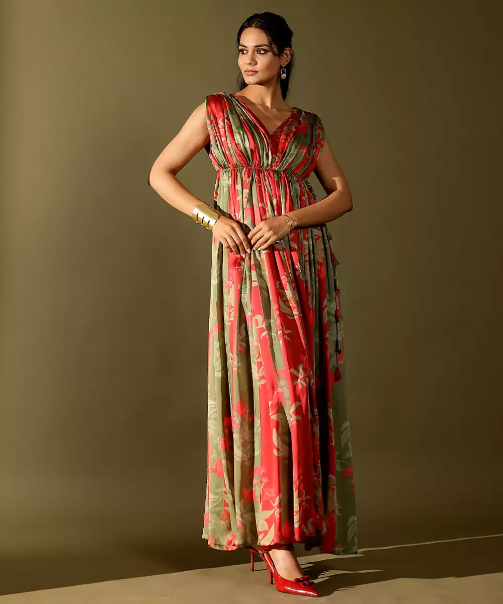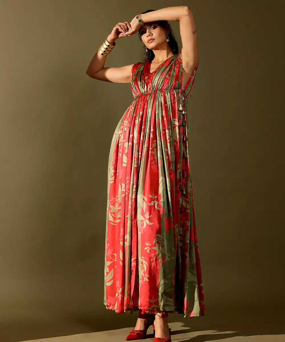 This Multicolor Printed Georgette Gown Radiates Graceful Charm With Its Vibrant Hue And Flowing Silhouette. The Lightweight Georgette Fabric Drapes Beautifully, While The Delicate Prints Add A Touch Of Artistic Elegance. Perfect For Celebrations, Evening Events, And Festive Gatherings, It Blends Comfort With Effortless Sophistication For A Standout Look.