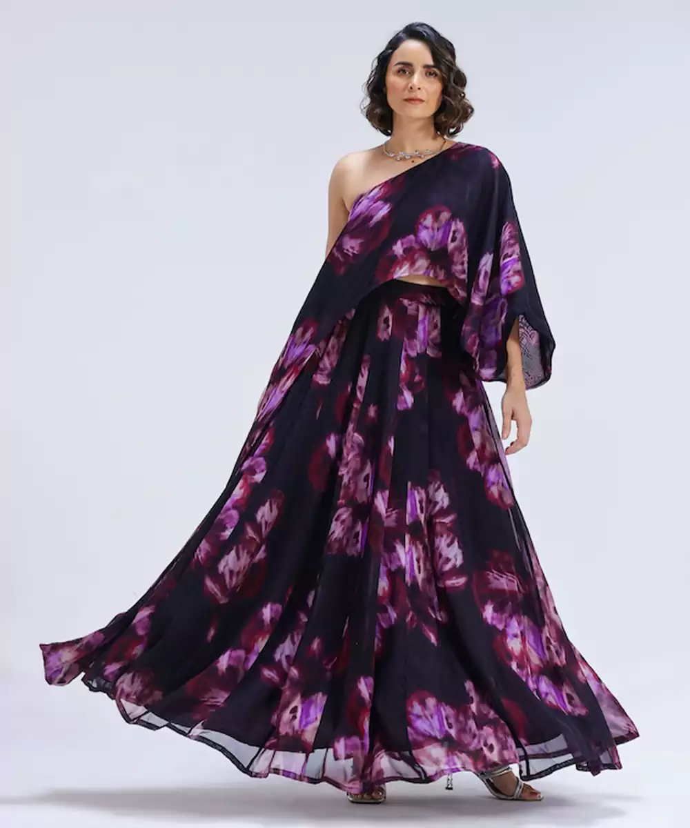 This Multicolor Printed Organza Co Ord Set Exudes Airy Elegance With Its Sheer Texture And Graceful, Lightweight Drape. The Vibrant Prints Add A Festive, Artistic Charm, Creating A Chic Contemporary Look. Perfect For Celebrations, Daytime Events, And Special Gatherings, It Blends Sophistication With Effortless Style For A Standout Ensemble.