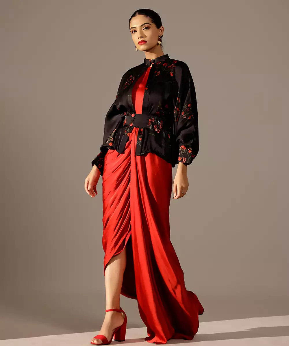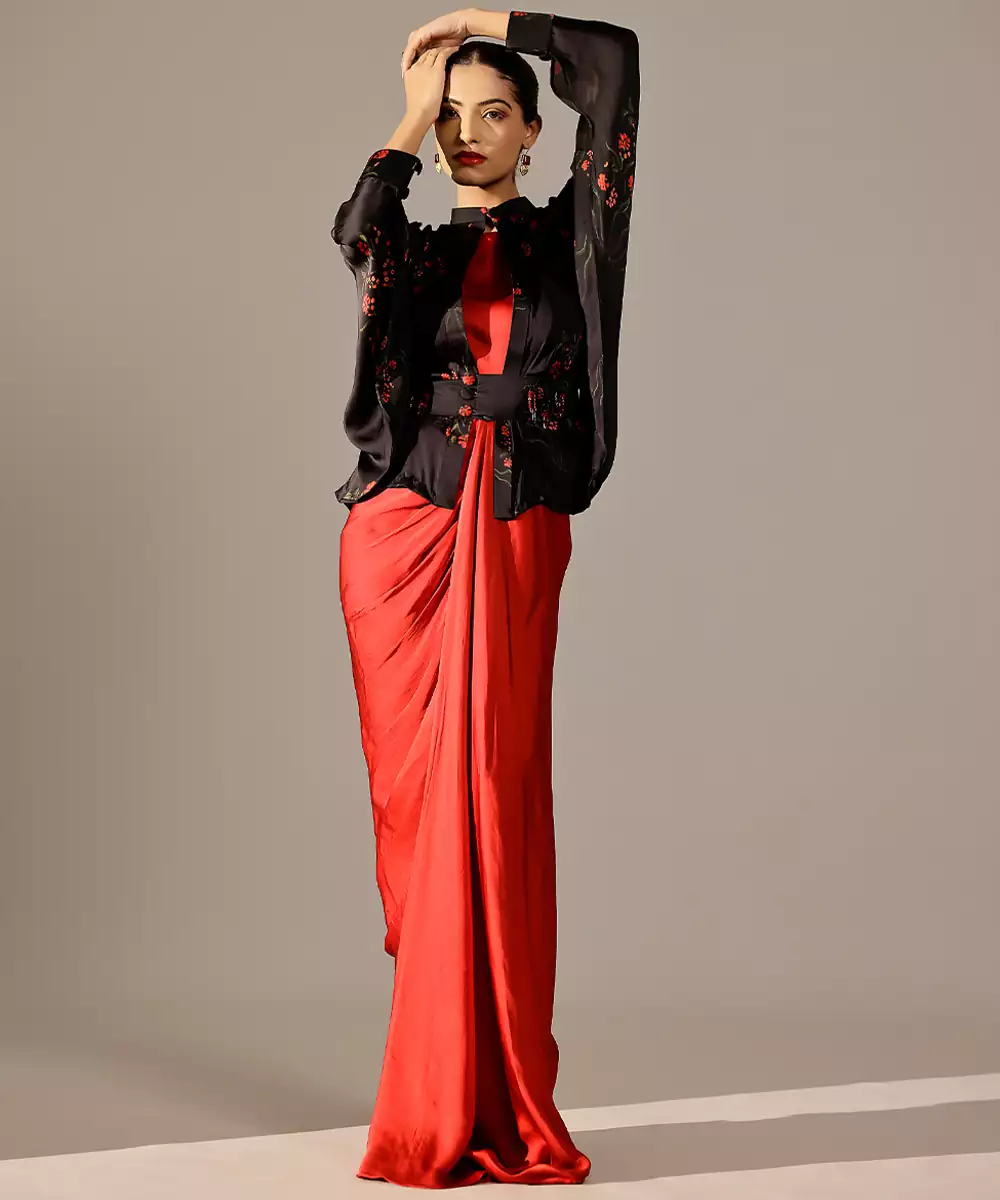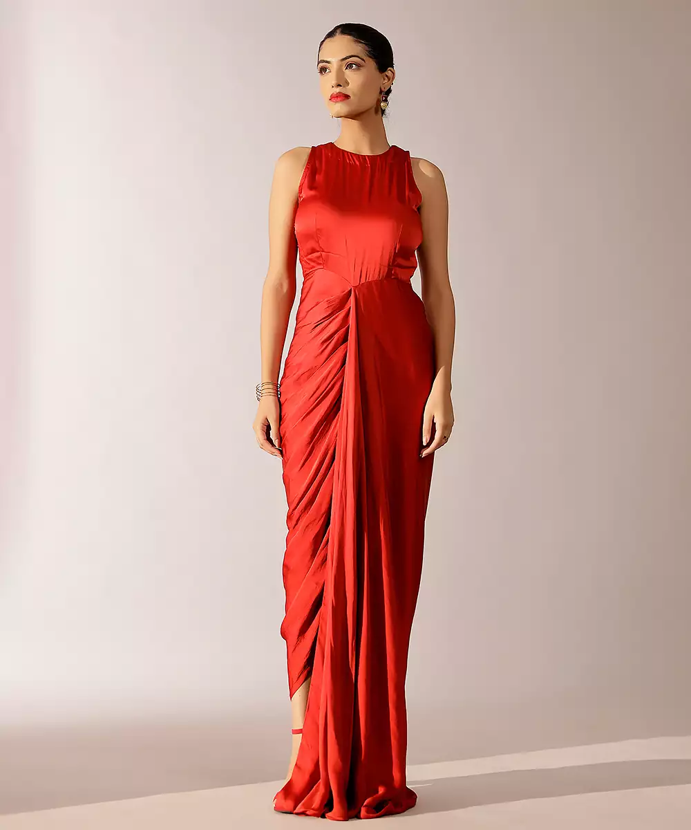 This Red Plain Georgette Gown Exudes Timeless Elegance With Its Rich Hue And Fluid, Graceful Drape. The Lightweight Georgette Fabric Offers Effortless Comfort And A Flattering Silhouette. Perfect For Evening Events, Celebrations, And Special Occasions, It Blends Simplicity With Sophistication For A Striking, Refined Look.
