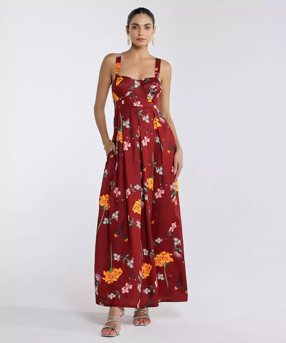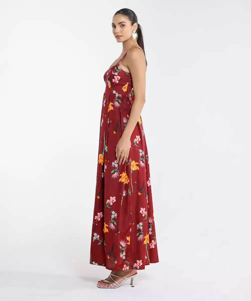 This Red Printed Cotton Dress Exudes Cheerful Elegance With Its Vibrant Hue And Soft, Breathable Fabric. The Delicate Prints Add A Touch Of Artistic Charm, While The Lightweight Cotton Ensures All Day Comfort. Perfect For Casual Outings, Daytime Events, And Festive Gatherings, It Blends Effortless Style With Modern, Feminine Grace.