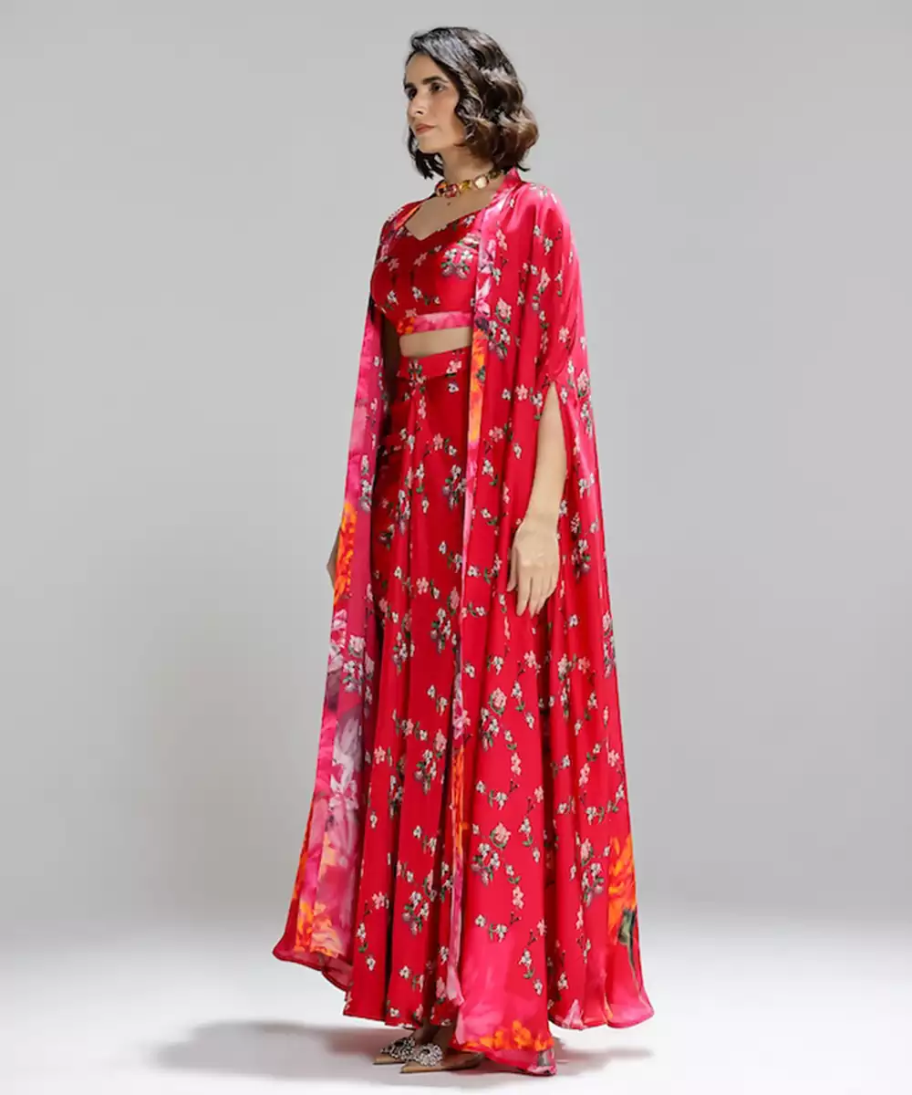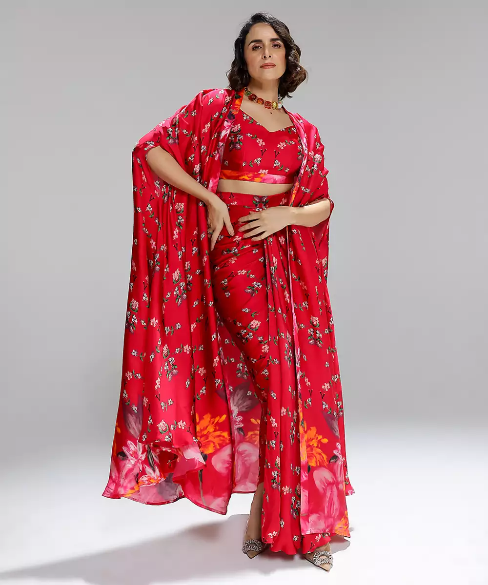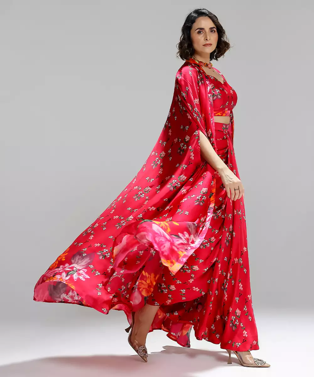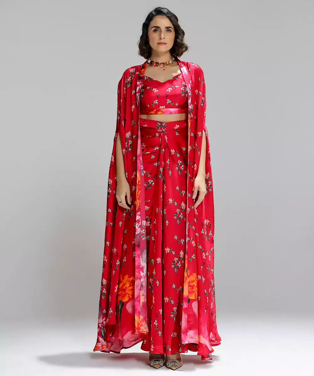 This Red Printed Georgette Co Ord Set Exudes Breezy Elegance With Its Fluid Drape And Refreshing, Nature Inspired Prints. The Lightweight Georgette Fabric Offers Airy Comfort, While The Coordinated Silhouette Adds A Chic, Contemporary Touch. Perfect For Festive Gatherings, Daytime Events, And Casual Outings, It Blends Effortless Style With Modern Sophistication.