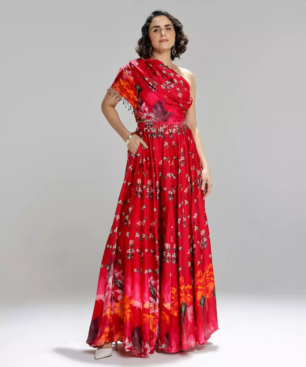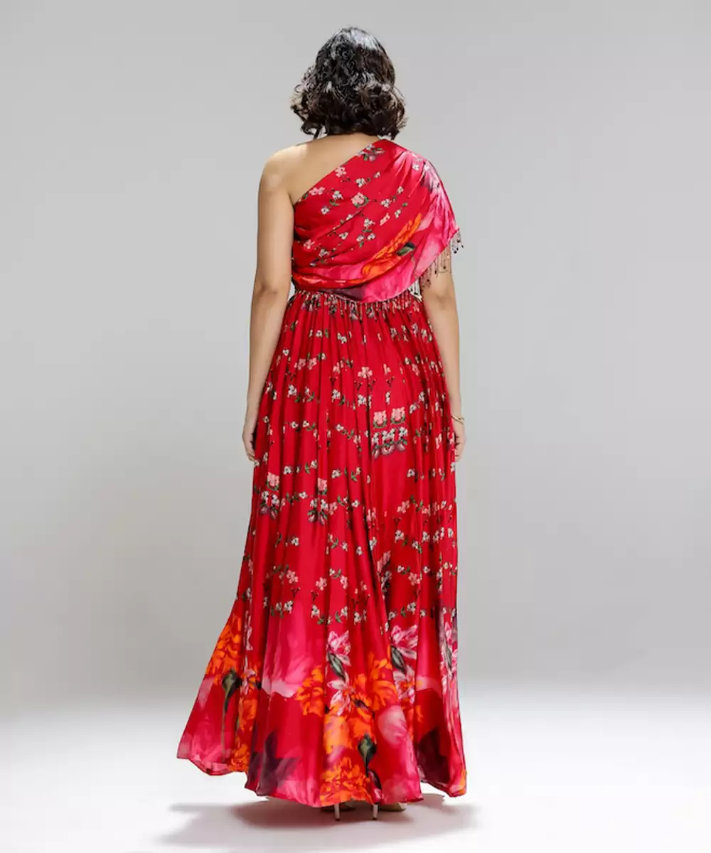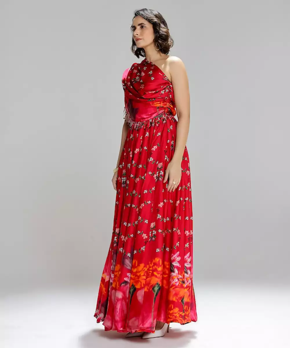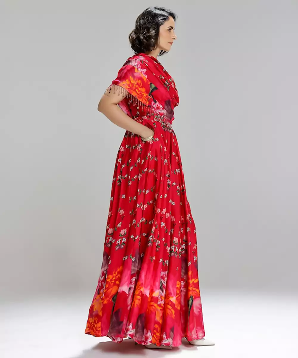 This Red Printed Georgette Co Ord Set Exudes Breezy Elegance With Its Fluid Drape And Refreshing, Nature Inspired Prints. The Lightweight Georgette Fabric Offers Airy Comfort, While The Coordinated Silhouette Adds A Chic, Contemporary Touch. Perfect For Festive Gatherings, Daytime Events, And Casual Outings, It Blends Effortless Style With Modern Sophistication.