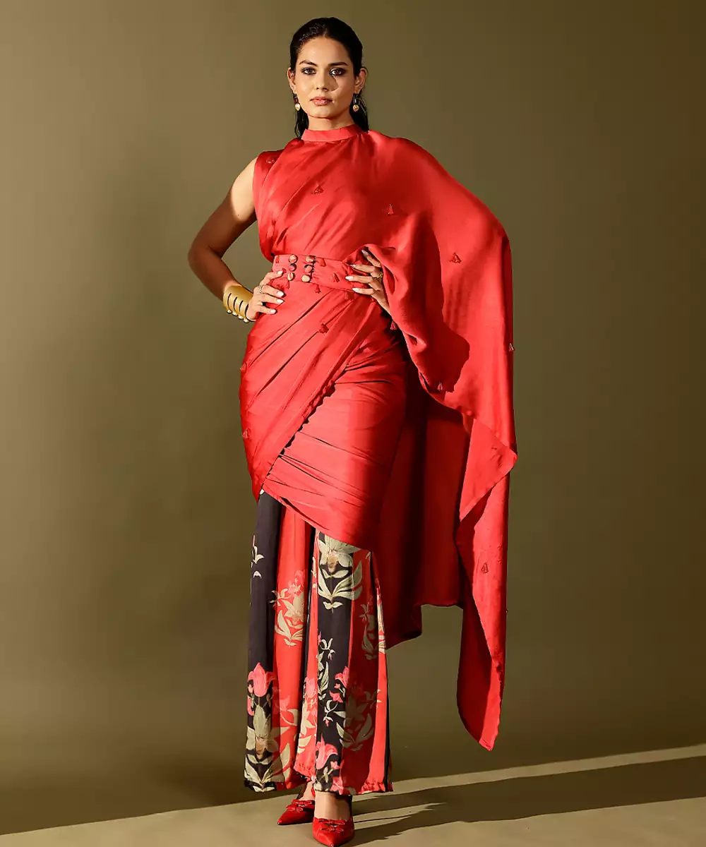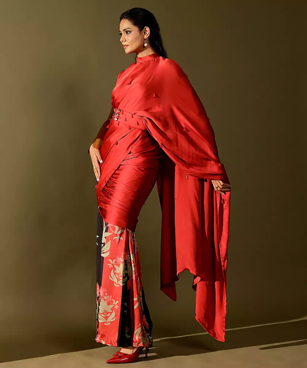 This Red Printed Georgette Saree Exudes Elegant Charm With Its Fluid Drape And Lightweight, Airy Feel. The Artistic Prints Add A Modern Yet Graceful Touch, Creating A Refined Festive Appeal. Perfect For Parties, Celebrations, And Evening Gatherings, It Blends Effortless Sophistication With Timeless Style For A Stunning Ethnic Look.