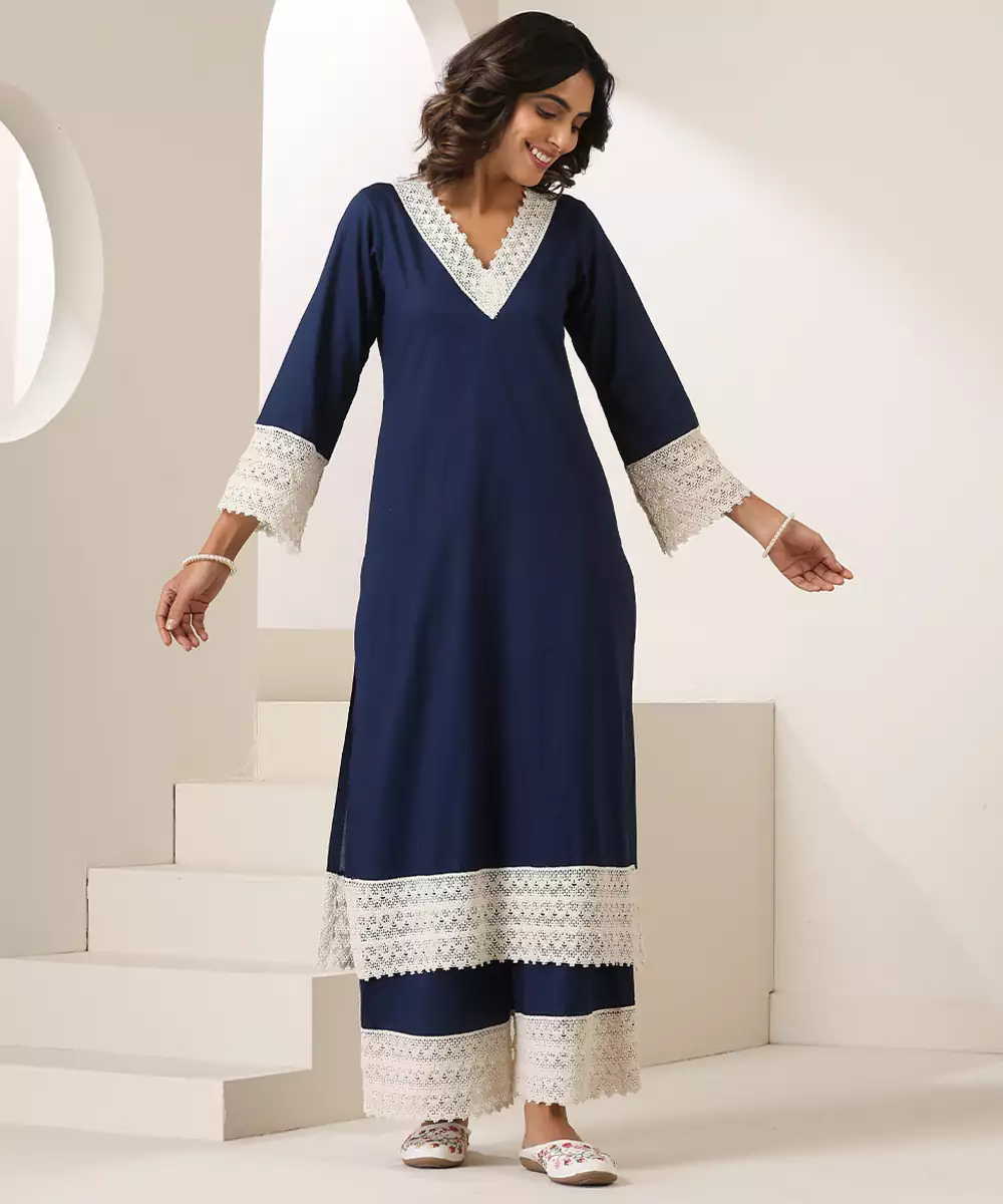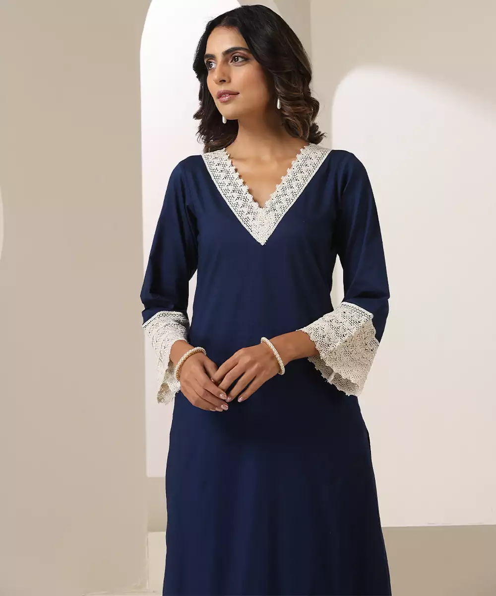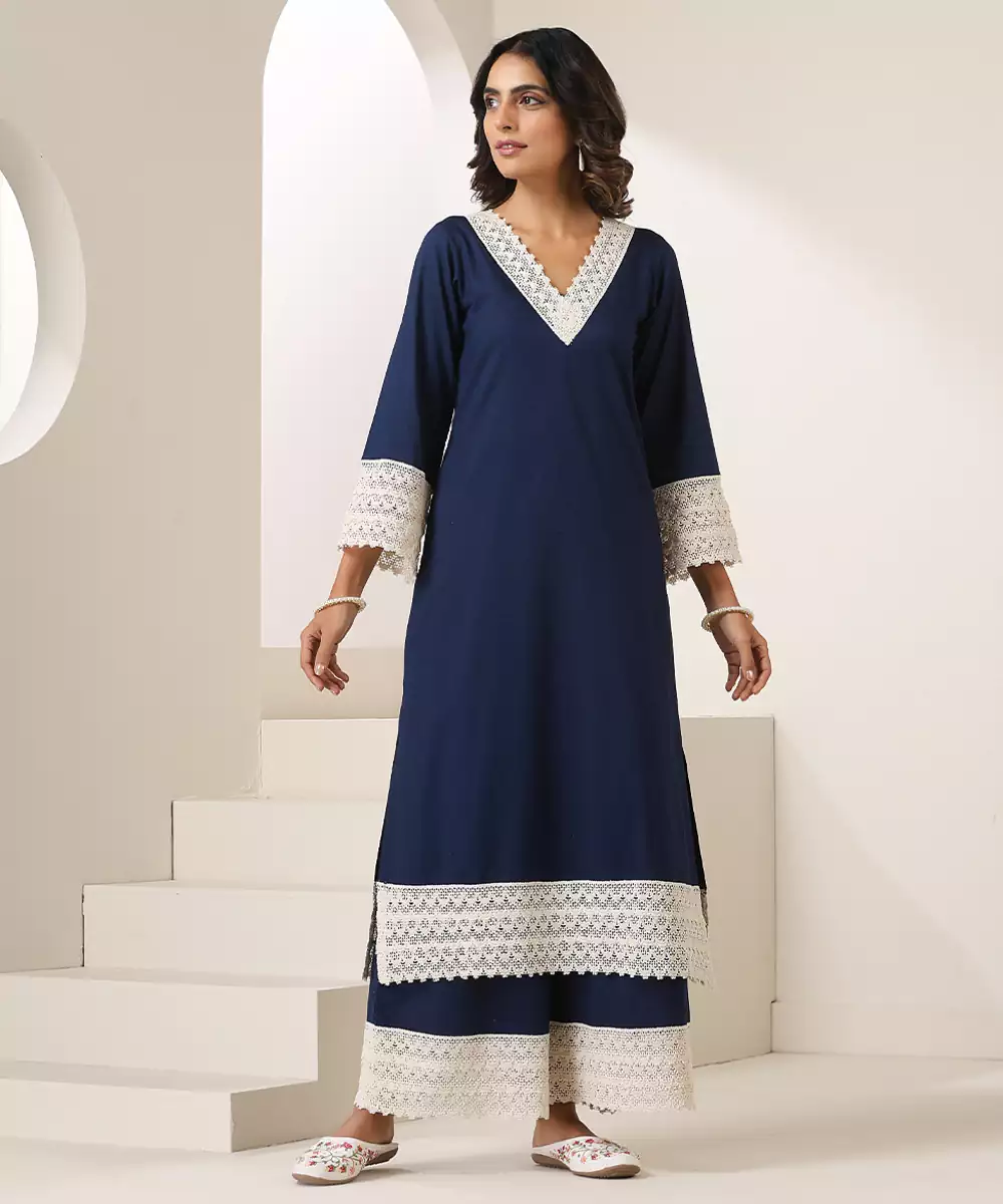 This Blue Plain Muslin Kurta Set Embodies Simplicity And Elegance With Its Soft, Breathable Fabric And Graceful Silhouette. Crafted From Premium Muslin, It Ensures All Day Comfort While Maintaining A Refined Look. Perfect For Casual Outings, Festive Gatherings, Or Daytime Events, This Set Adds A Touch Of Timeless Sophistication To Your Wardrobe.