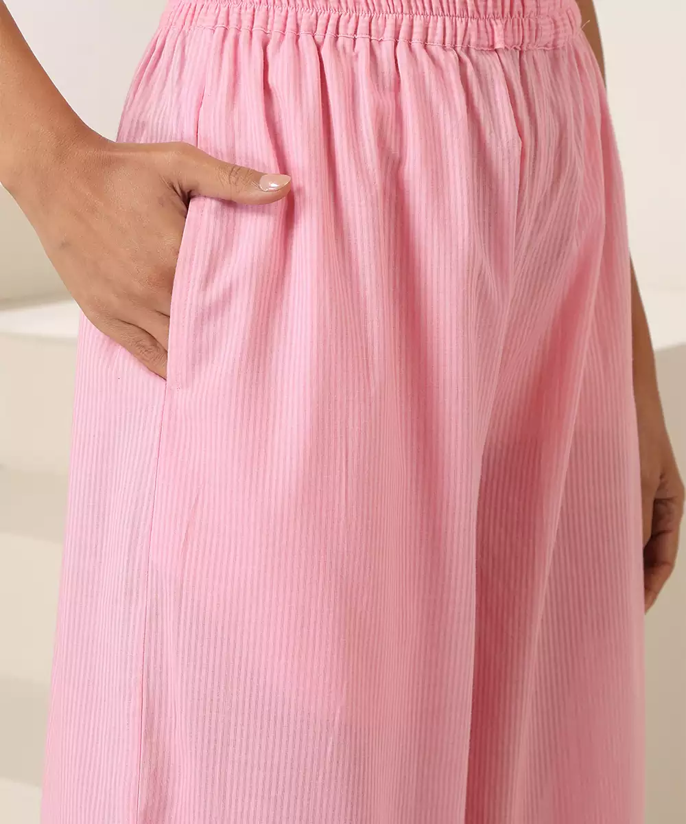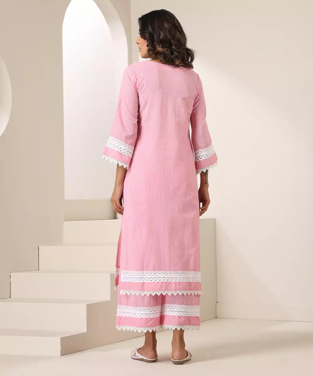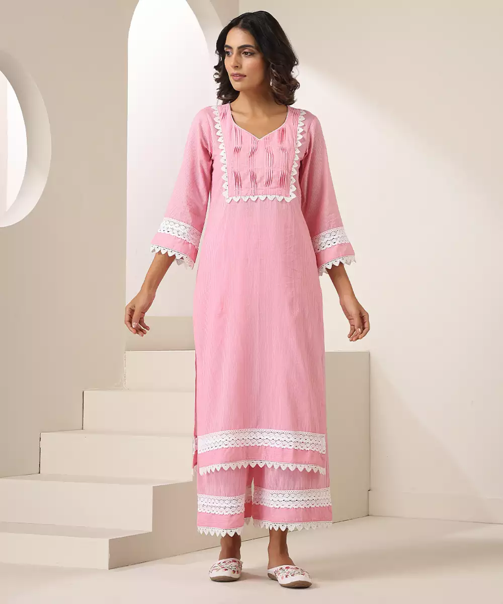 This Pink Plain Cotton Kurta Set Offers A Blend Of Simplicity And Comfort With Its Soft, Breathable Fabric. Designed For Effortless Elegance, It Provides A Relaxed And Graceful Silhouette. Perfect For Casual Outings, Office Wear, Or Daytime Gatherings, This Set Adds A Fresh, Charming Touch To Your Everyday Ethnic Style.