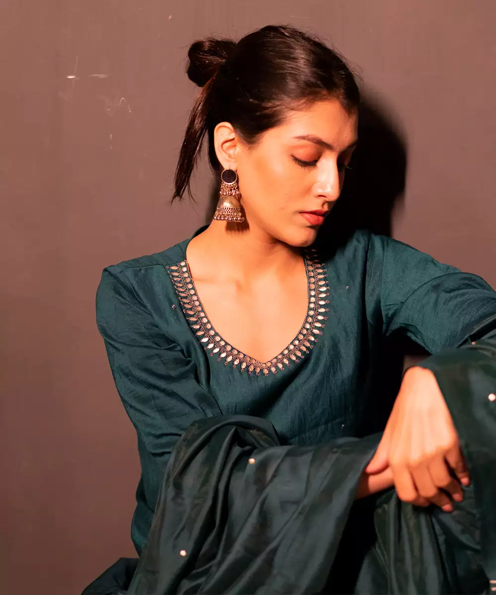 Turquoise Sufi, Zardozi Hand Work Straight Fit Suit Set.