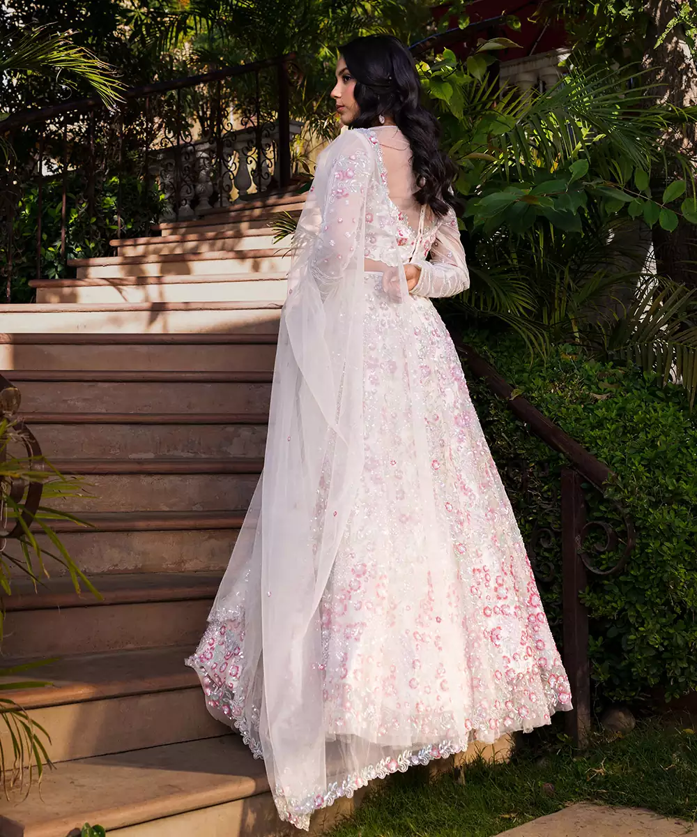 Modern Bridal Lehenag Set For The Experimental Bride To Be. This Is A Perfect Ensemble With Intricate Handwork Details. Ombre Handwork