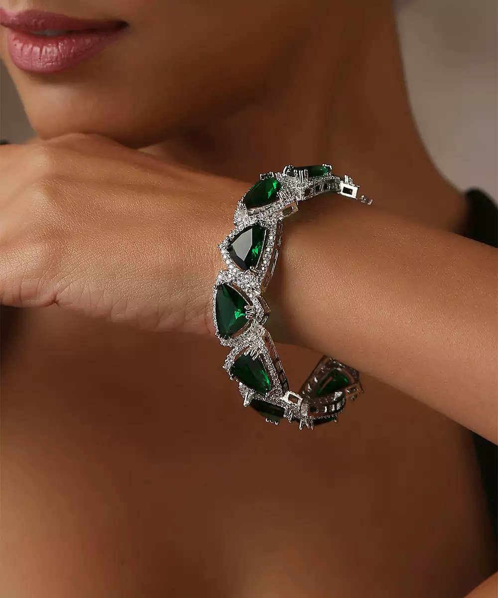 Emerald Silver Tone Zirconia Bangle Material : Brass Color : Green