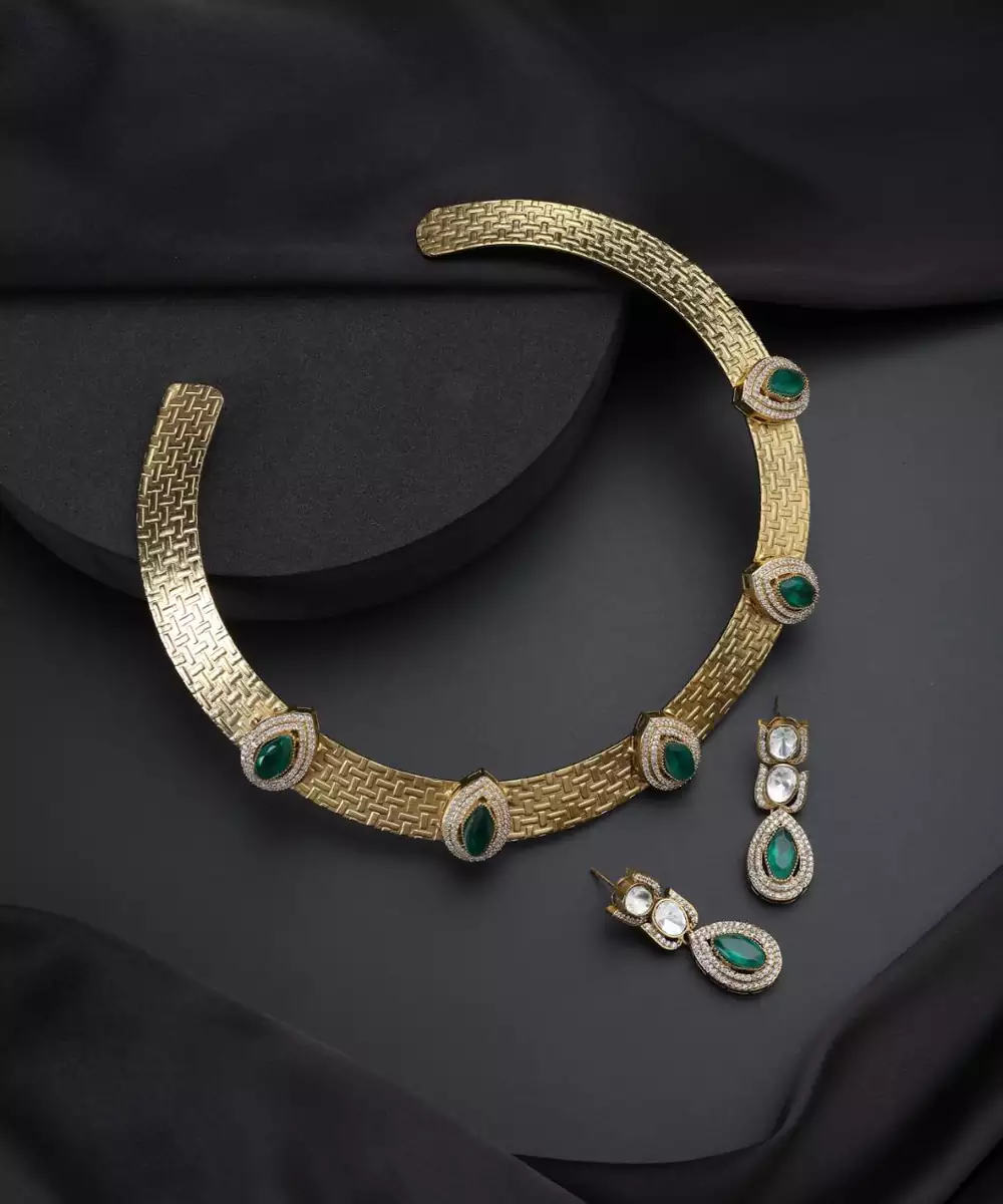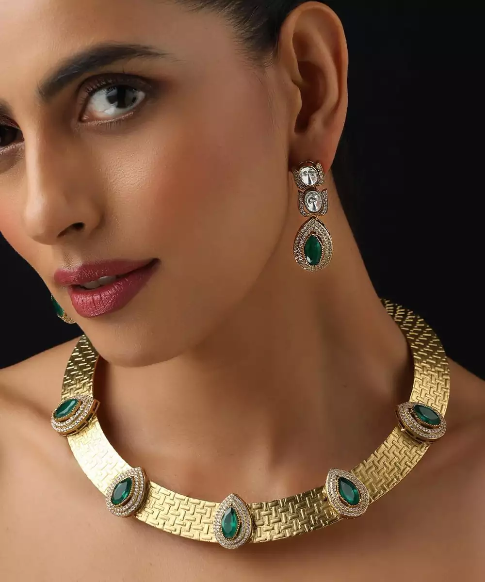These Gold Plated Green Stone Dangler Earrings Exude Elegance And Charm. Featuring Striking Green Stones With Intricate Detailing, They Are Finished With Rich Gold Plating For A Luxurious Touch. Perfect For Weddings, Festive Occasions, And Special Celebrations, They Pair Beautifully With Both Traditional And Contemporary Outfits.