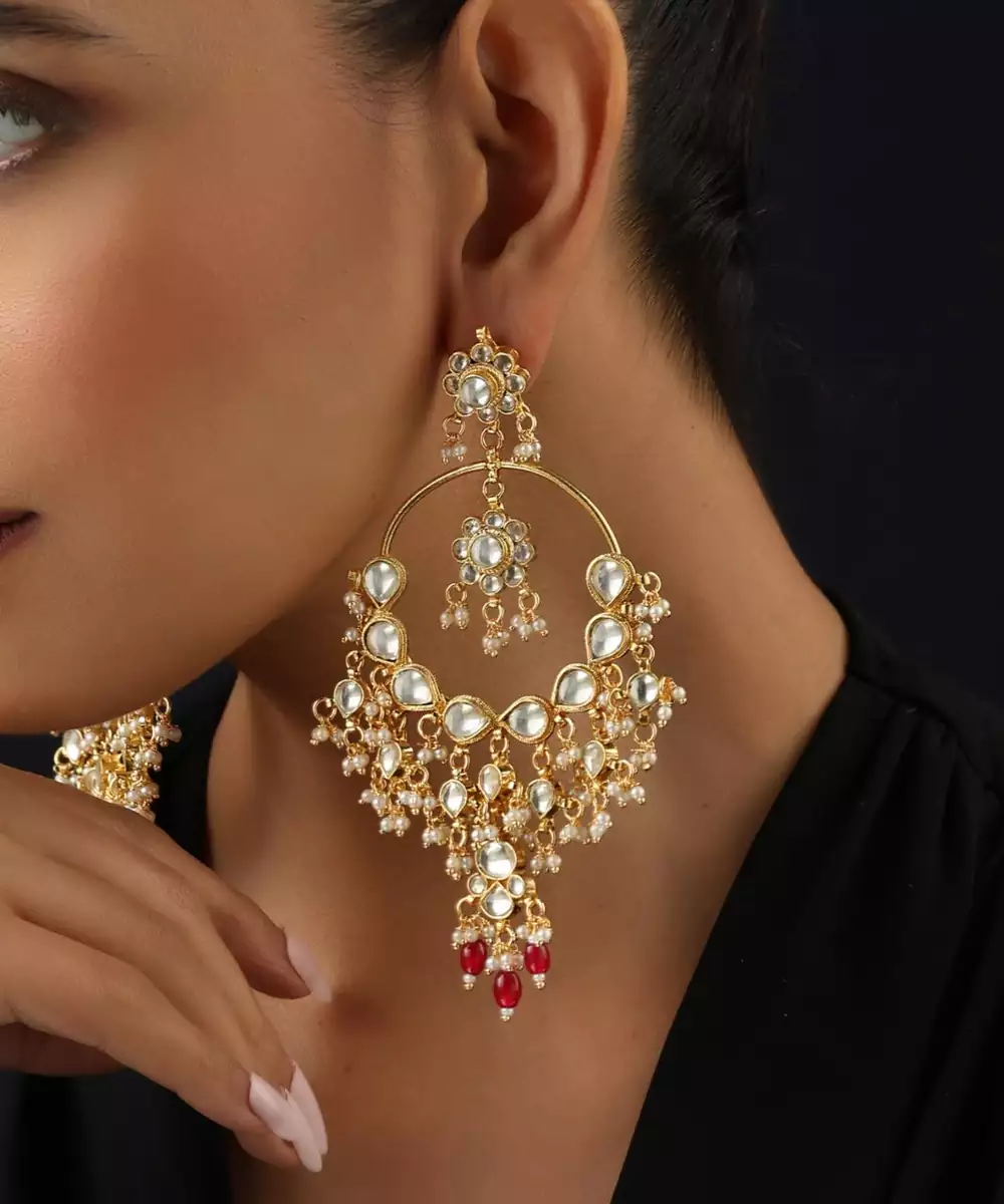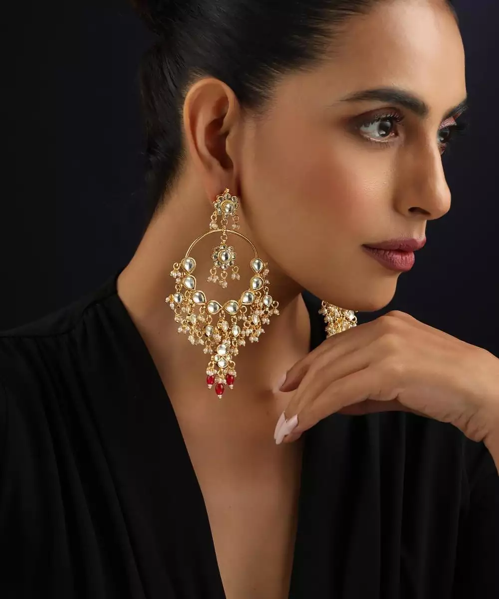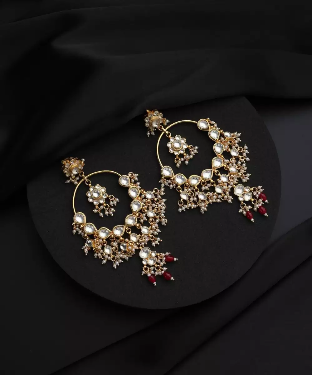 These Gold Plated Kundan Dangler Earrings Showcase Timeless Elegance And Traditional Charm. Adorned With Intricate Kundan Work, They Are Finished With Rich Gold Plating For A Luxurious Appeal. Perfect For Weddings, Festive Occasions, And Cultural Celebrations, They Beautifully Complement Both Ethnic And Contemporary Outfits.