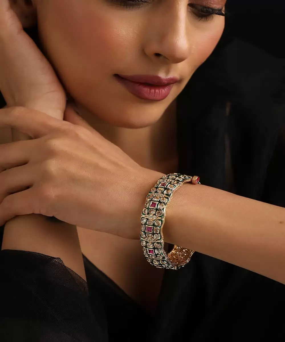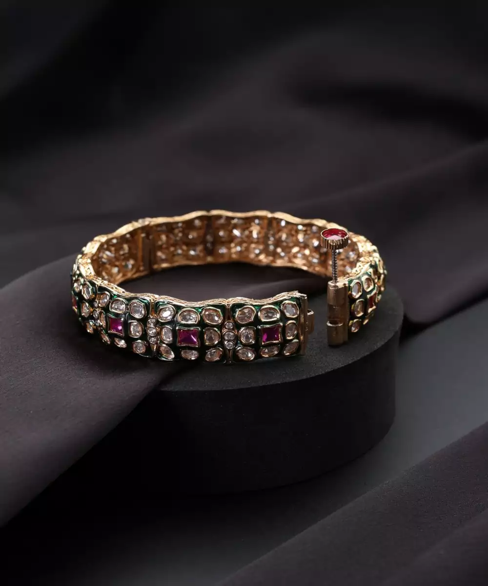 Elevate Your Style With This Rose Gold Plated Polki Bangle. The Modern, Blush Hue Of Rose Gold Beautifully Complements The Rustic Charm Of Traditional Polki Stones. This Elegant Piece Blends Contemporary Fashion With Classic Indian Craftsmanship, Making It A Versatile Accessory For Both Festive Events And Everyday Sophistication