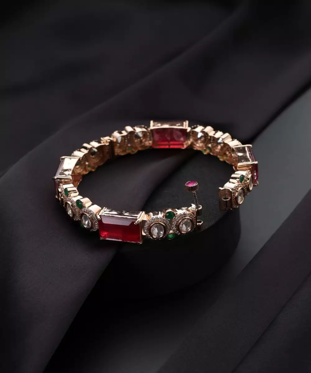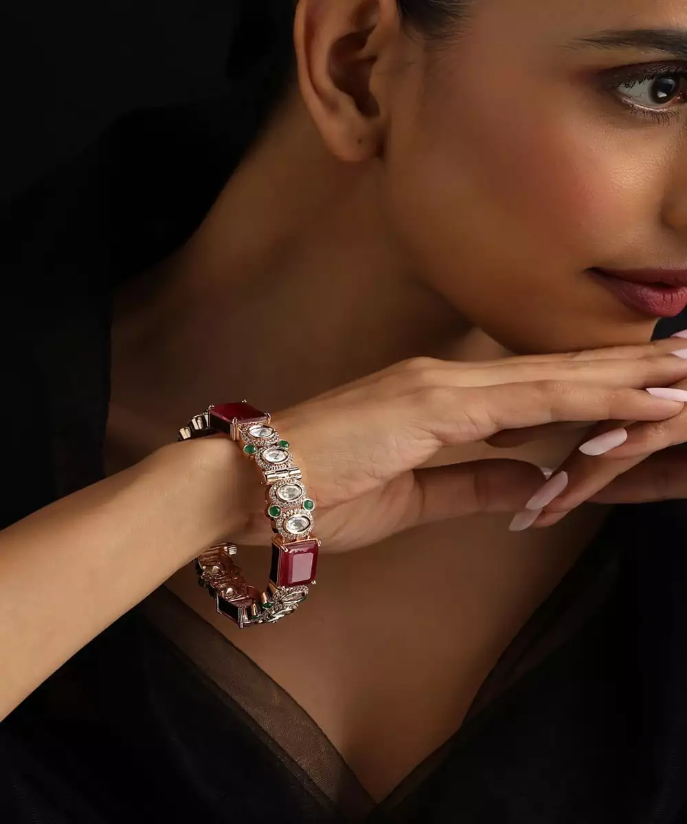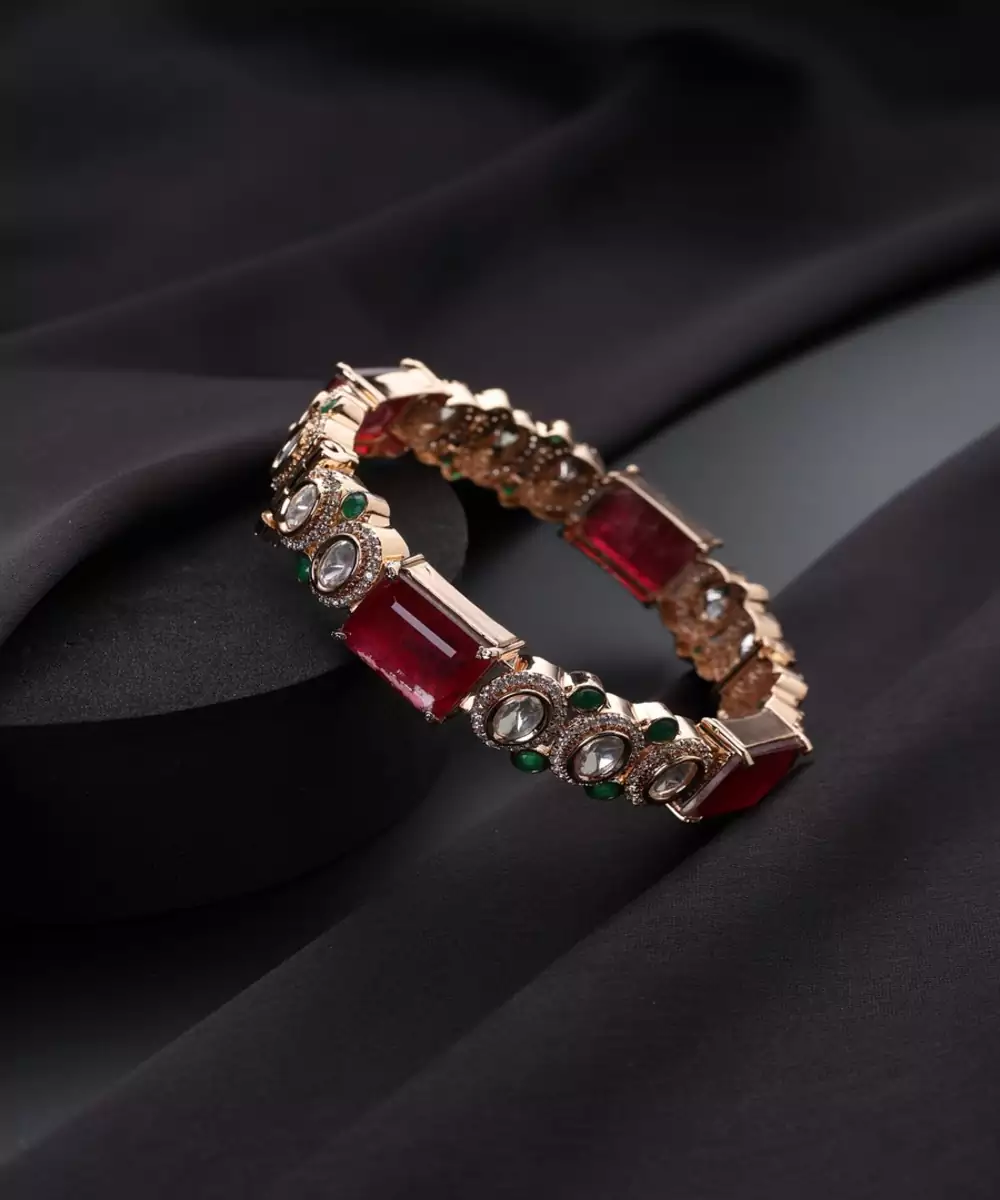Elevate Your Style With This Rose Gold Plated Polki Bangle. The Modern, Blush Hue Of Rose Gold Beautifully Complements The Rustic Charm Of Traditional Polki Stones. This Elegant Piece Blends Contemporary Fashion With Classic Indian Craftsmanship, Making It A Versatile Accessory For Both Festive Events And Everyday Sophistication